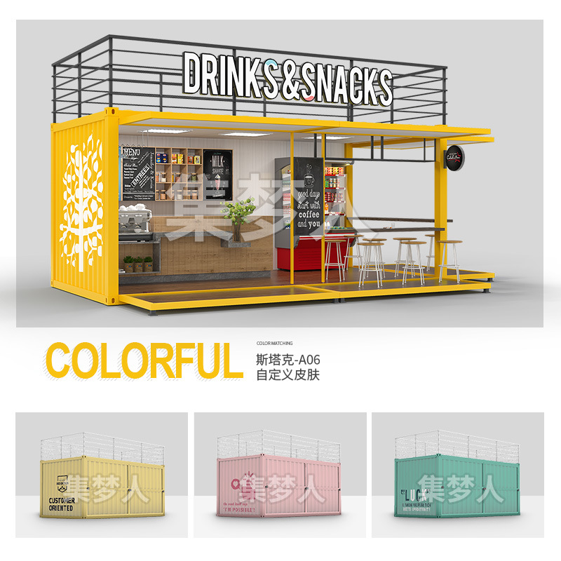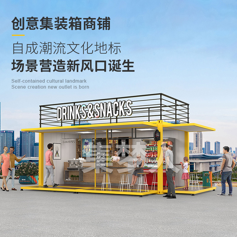 Контейнерный магазин с индивидуальным дизайном для коммерческой улицы, киоск для туристической зоны, интернет-магазин в стиле стритстайл, контейнерный дом.