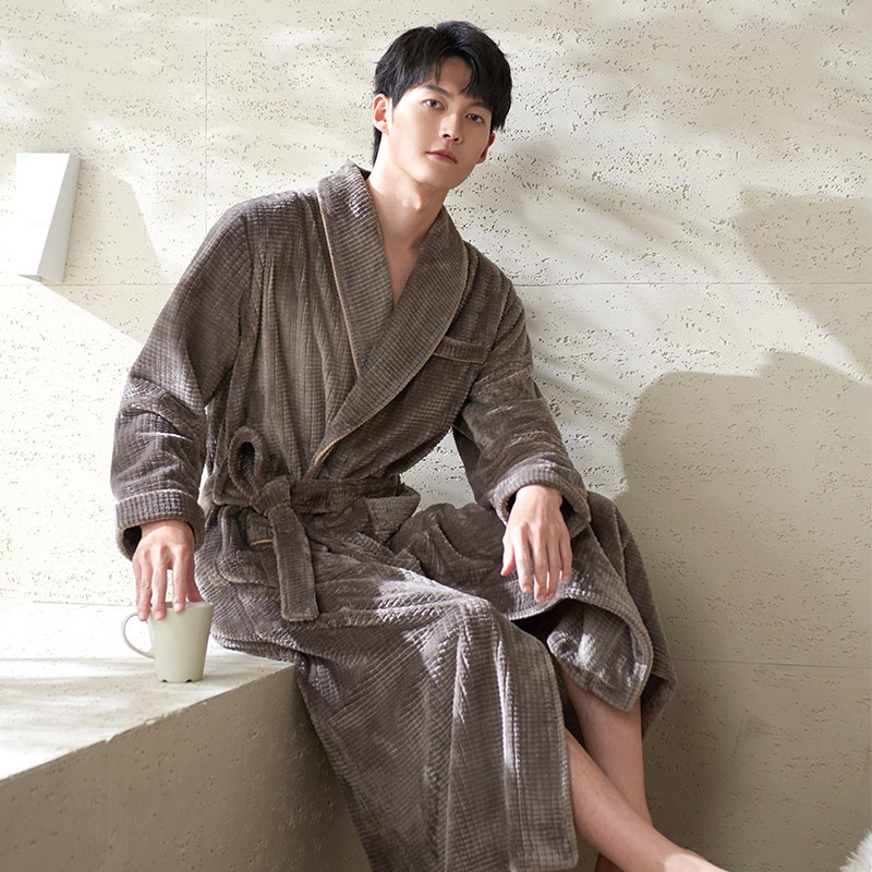 Главная страница > Мужская зимняя домашняя одежда Chaohang, фланелевой халат с утолщенными лацканами на флисовой подкладке, доступен для дропшиппинга, мужской халат и пижамы.