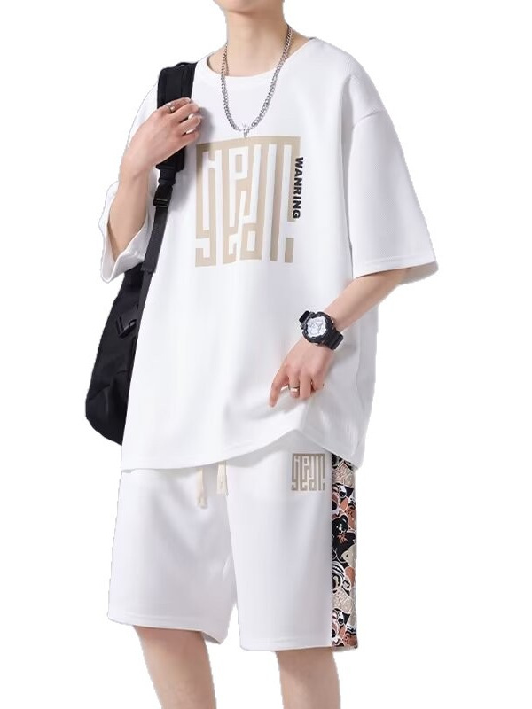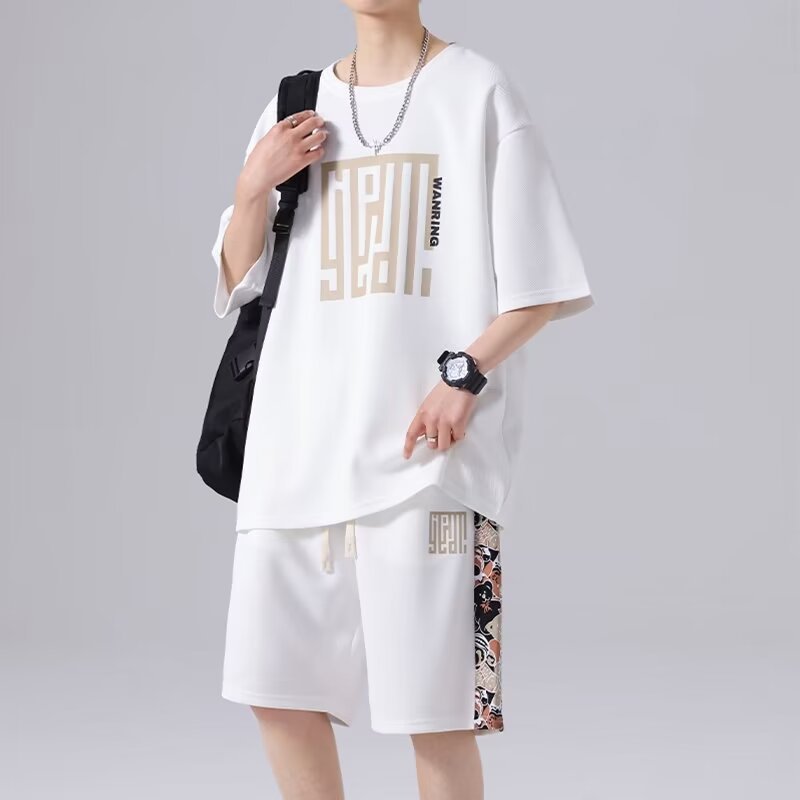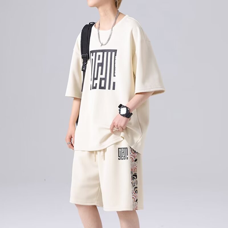 Главная страница > Новый мужской костюм с короткими рукавами, летний модный тонкий костюм, повседневная спортивная футболка, летний модный костюм из двух предметов, трендовый