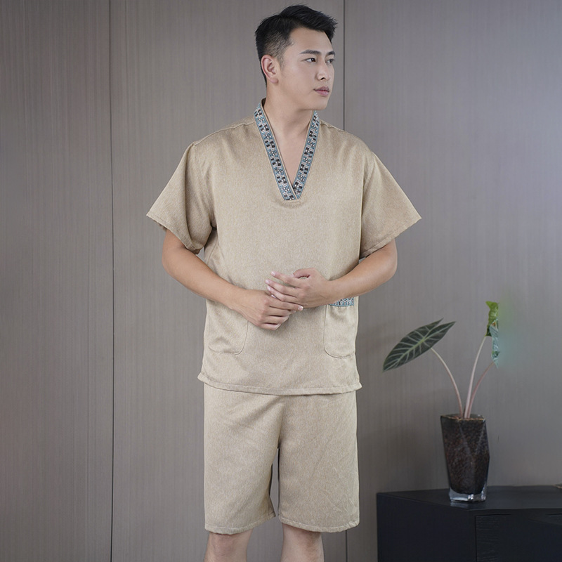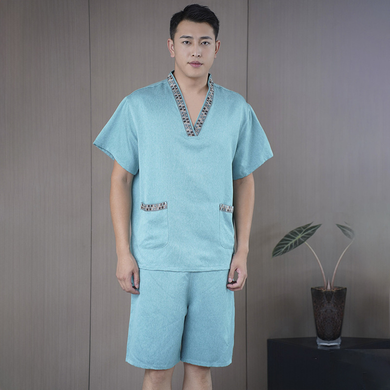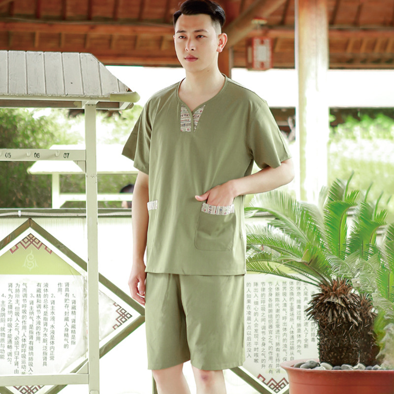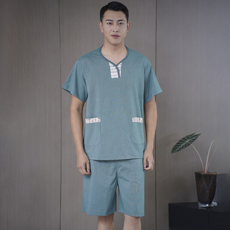 Хлопковая зеленая мужская одежда с V-образным вырезом