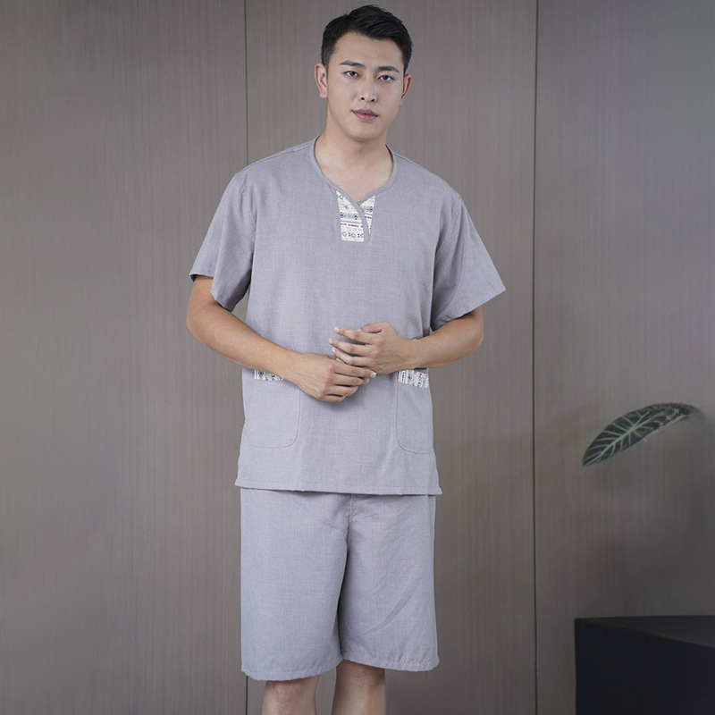 Премиальный светло-серый мужской воротник в корейском стиле из конопляной ткани