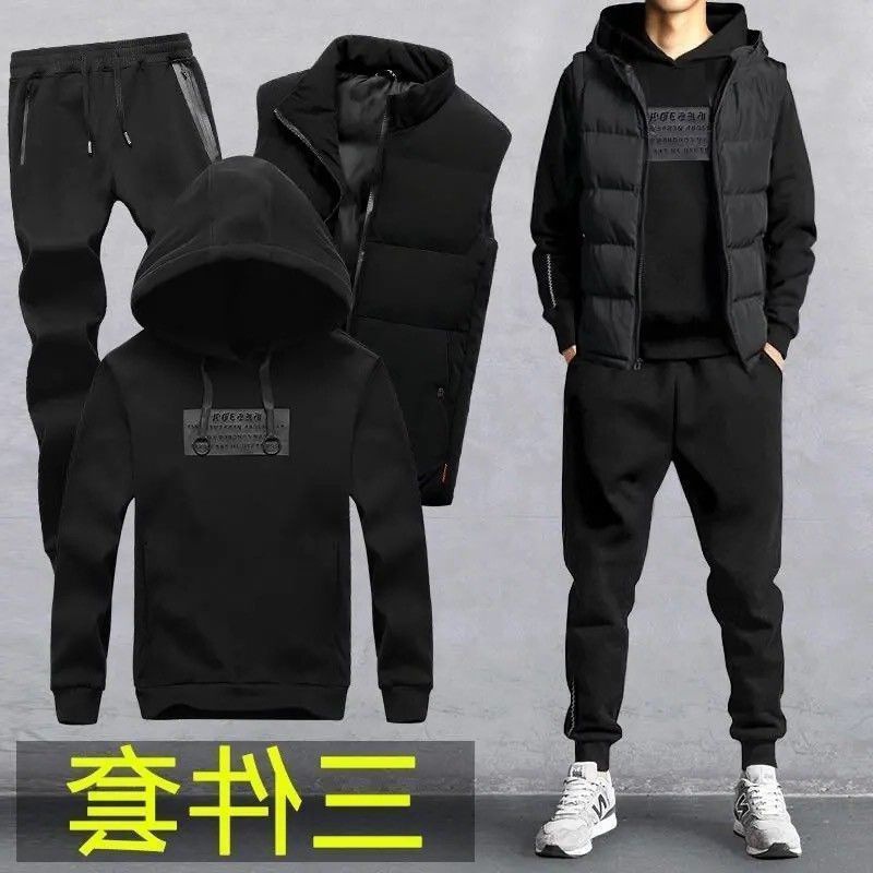 Главная страница > Мужской осенне-зимний свитер-жилет, повседневный костюм-тройка, модный простой Повседневный красивый спортивный костюм-тройка с капюшоном