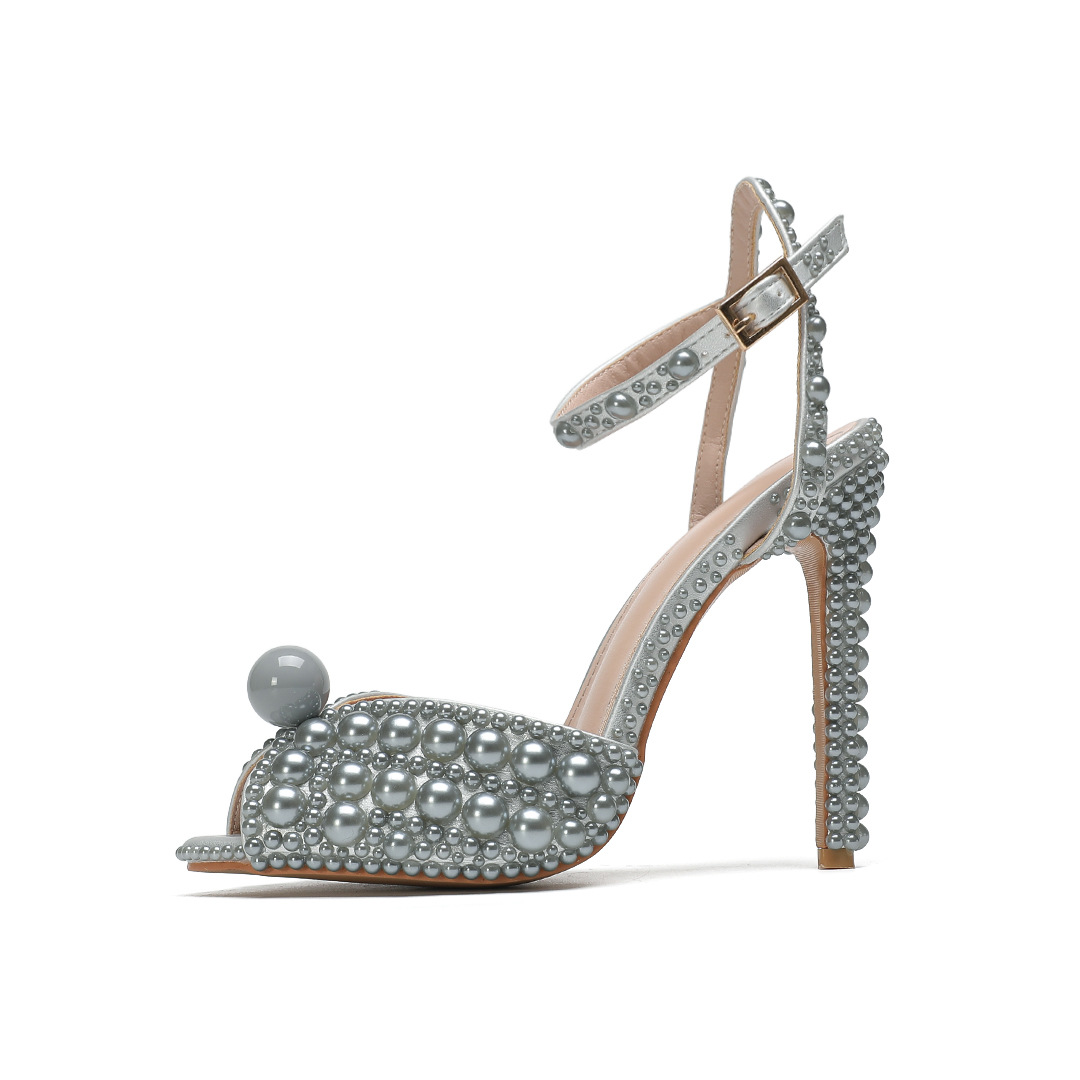 Главная страница > Осень 2022, новые женские туфли на высоком каблуке-шпильке с открытым носком, стразами и жемчугом, свадебное платье, свадебные туфли