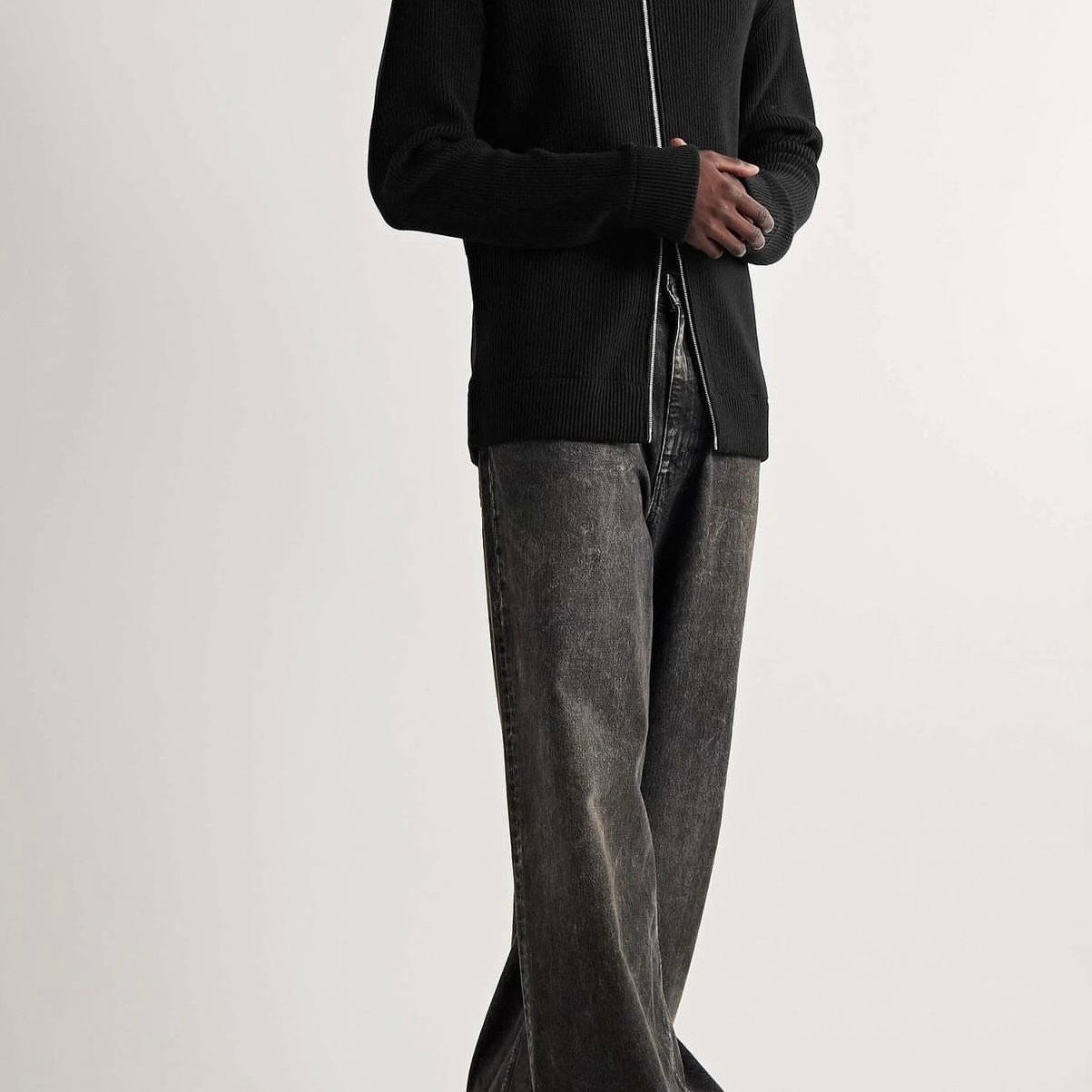 Главная страница > Четырехугольник ручной шитья/cleanfit черный высокий воротник с вертикальным воротником двойной молния трикотажный кардиган куртка мужской