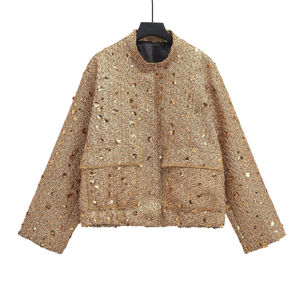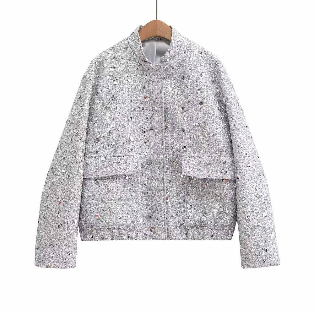 Главная страница > Высокое качество 2024 новая мода бисероплетение с блестками куртка куртка для женщин шикарный пригородный блеск топ