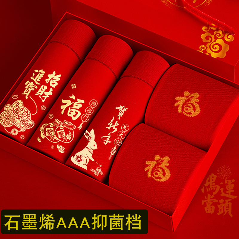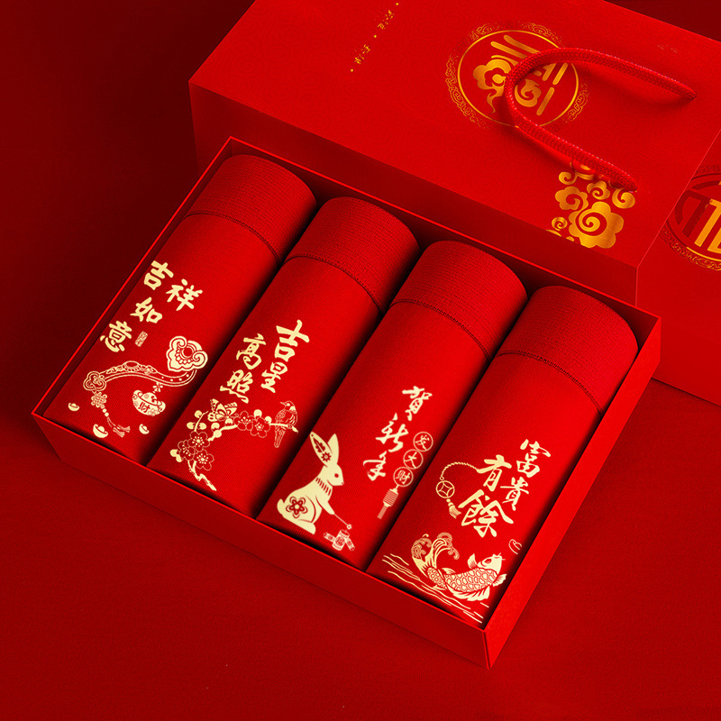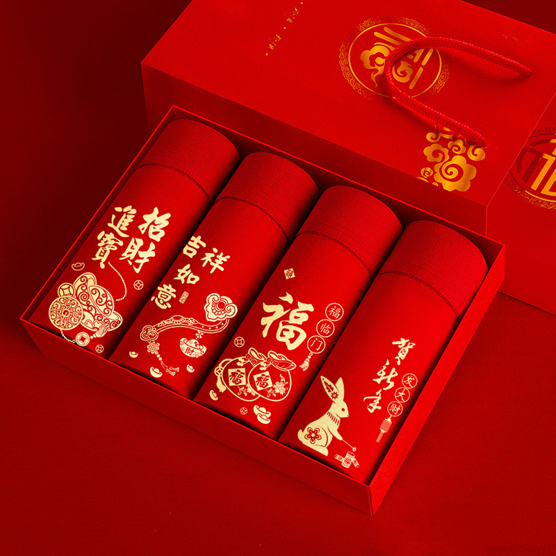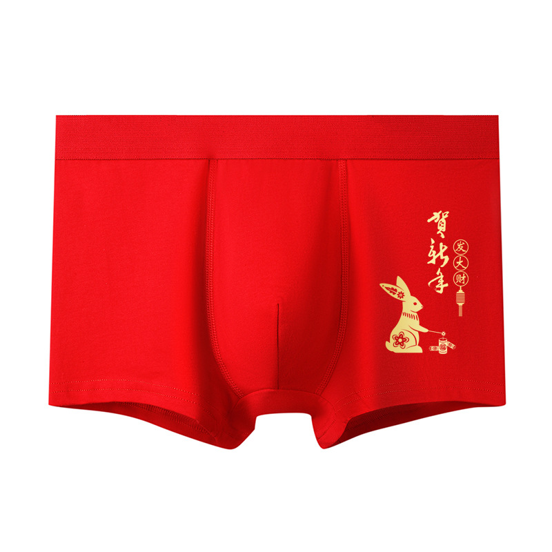 Мужское нижнее белье Year of the Rabbit Мужские боксеры-шорты из чистого хлопка, дышащие четырехугольные шорты, мужское нижнее белье красного цвета, мужское нижнее белье с кроликом