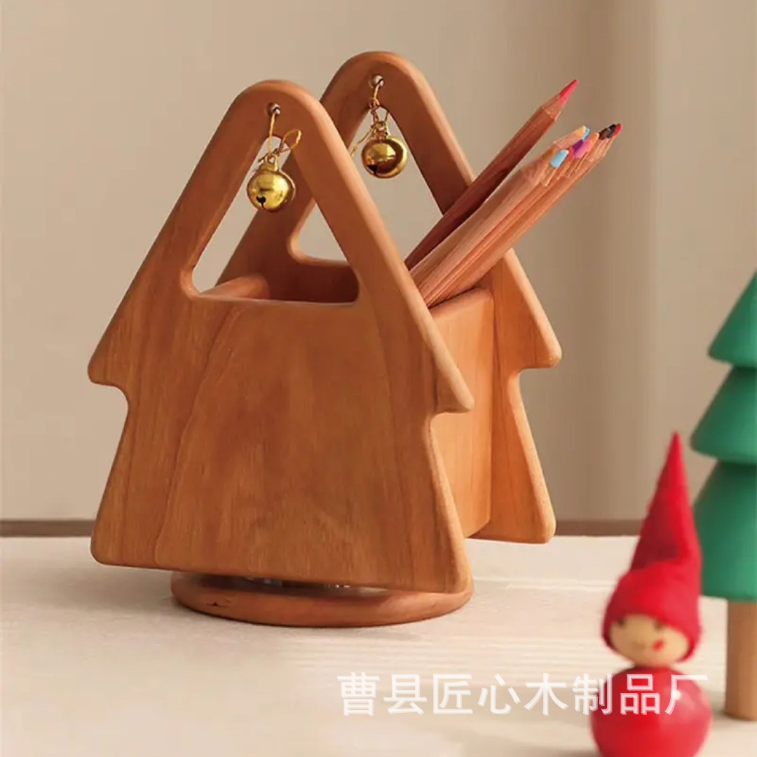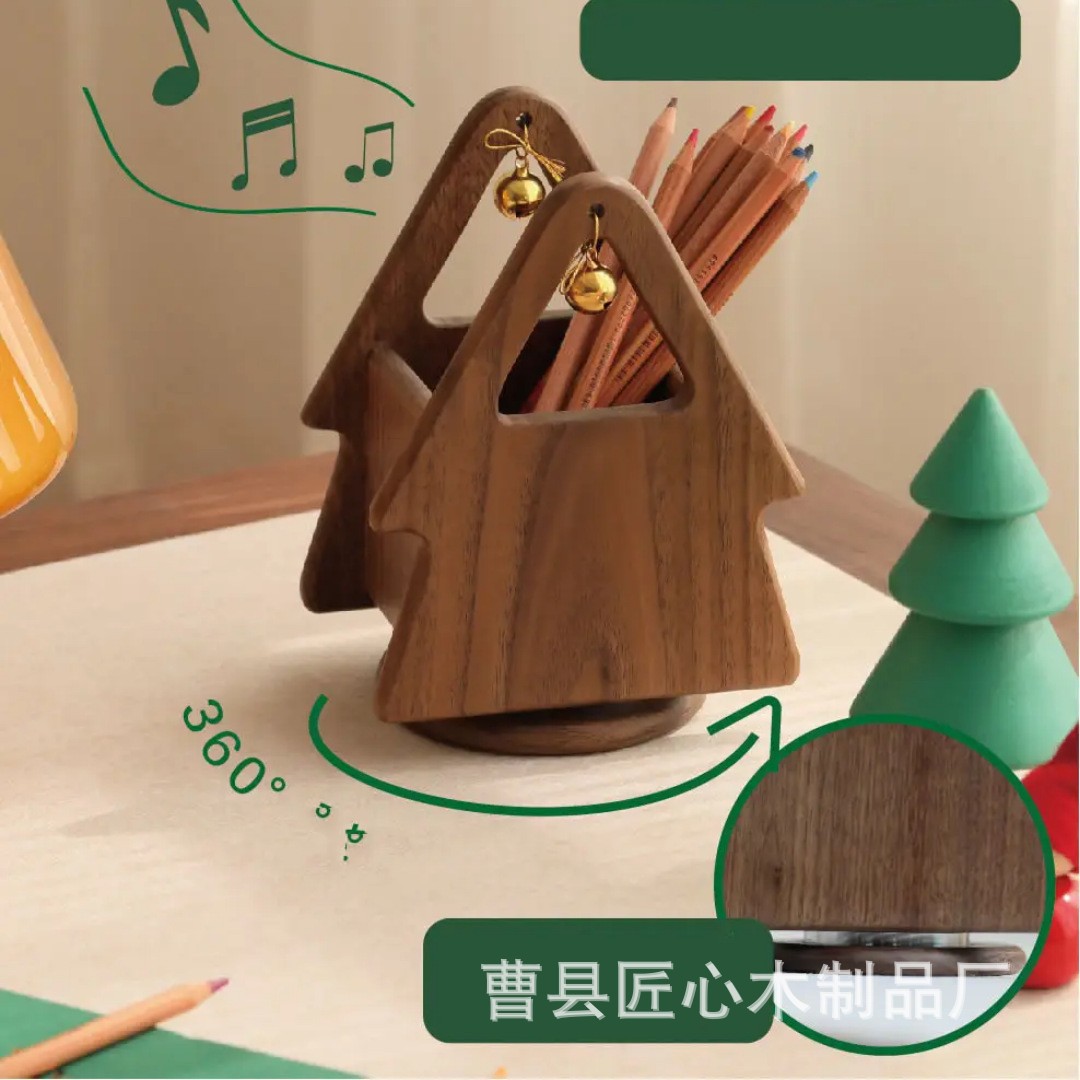 Новый деревянный вращающийся держатель для ручек Lucky Christmas Tree, настольный органайзер для канцелярских принадлежностей, коробка для туалетного столика, коробка для хранения кистей для макияжа