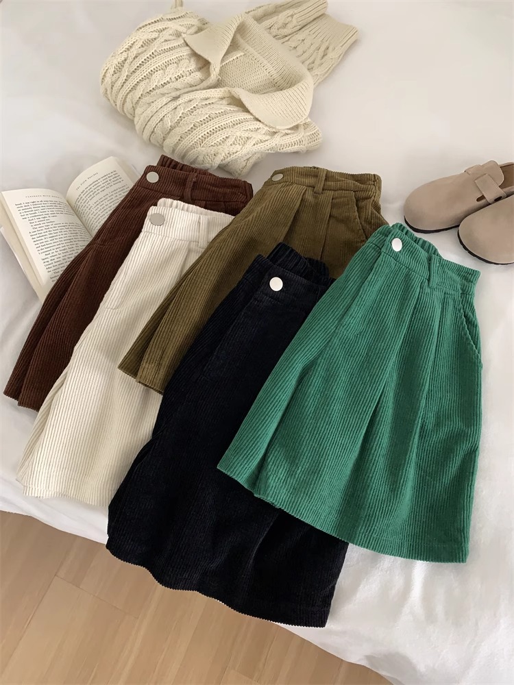 Главная страница > Новый американский осенний и зимний ретро большой размер вельветовые шорты широкие брюки с высокой талией тонкая и эласткая талия повседневная одежда для женщин