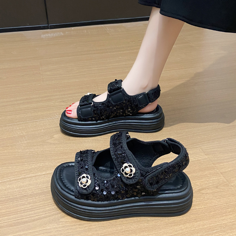 Главная страница > 2025 новые летние стильные маленькие ароматные римские сандалии на липучке для женщин, модные пляжные туфли на толстой подошве для повседневной носки