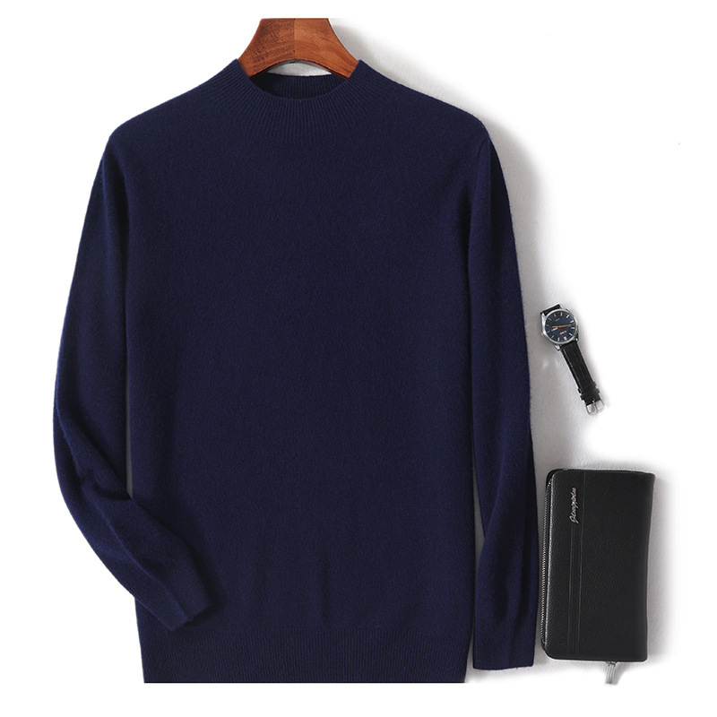 Главная страница > Мужской однотонный вязаный свитер 2024 года с полувысоким воротником, свободная и теплая базовая рубашка-пуловер.