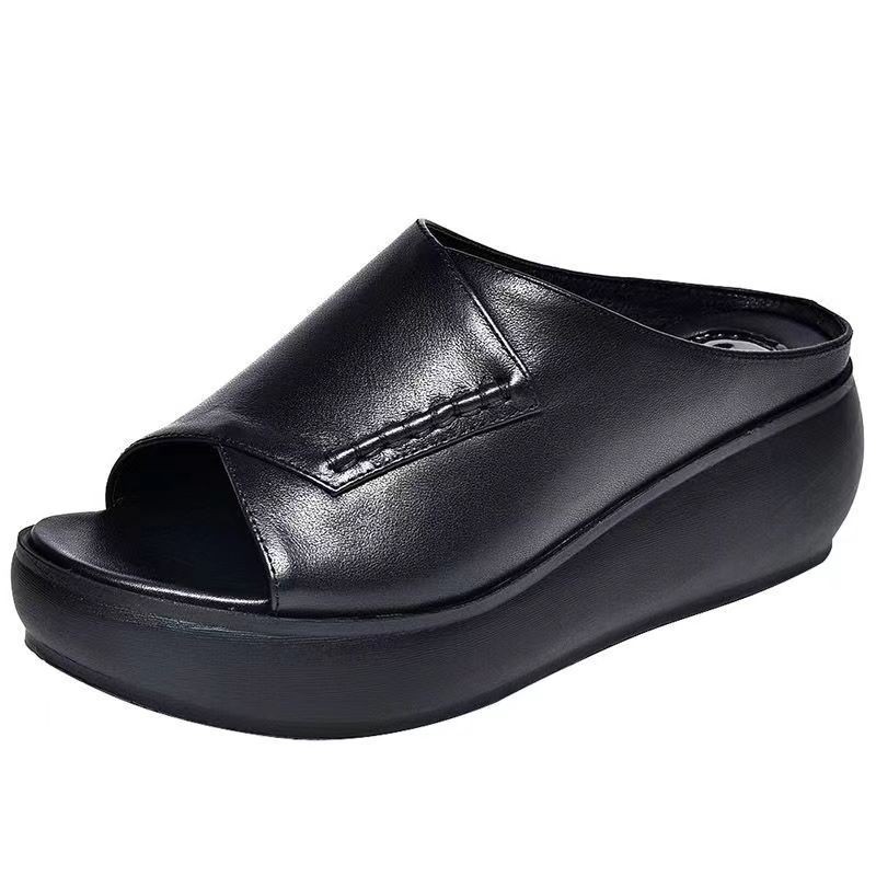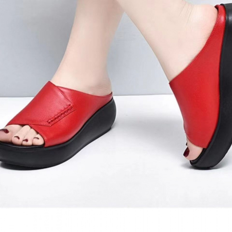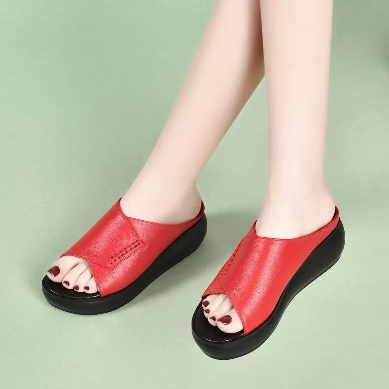 Главная страница > Настоящая мягкая кожа толстая подошва мягкая мама тапочки женские летние 2022 новые модные туфли на каблуках