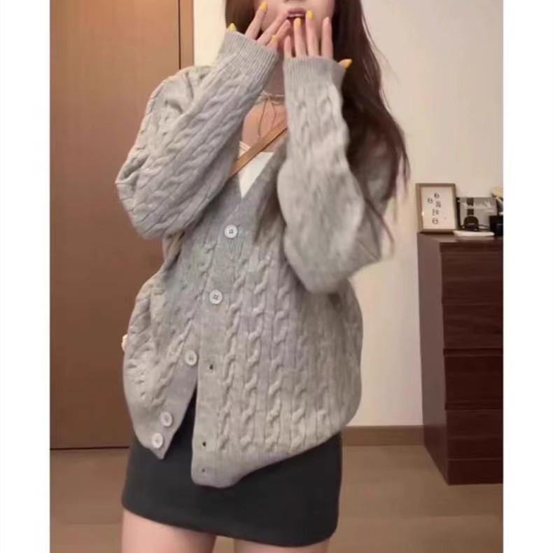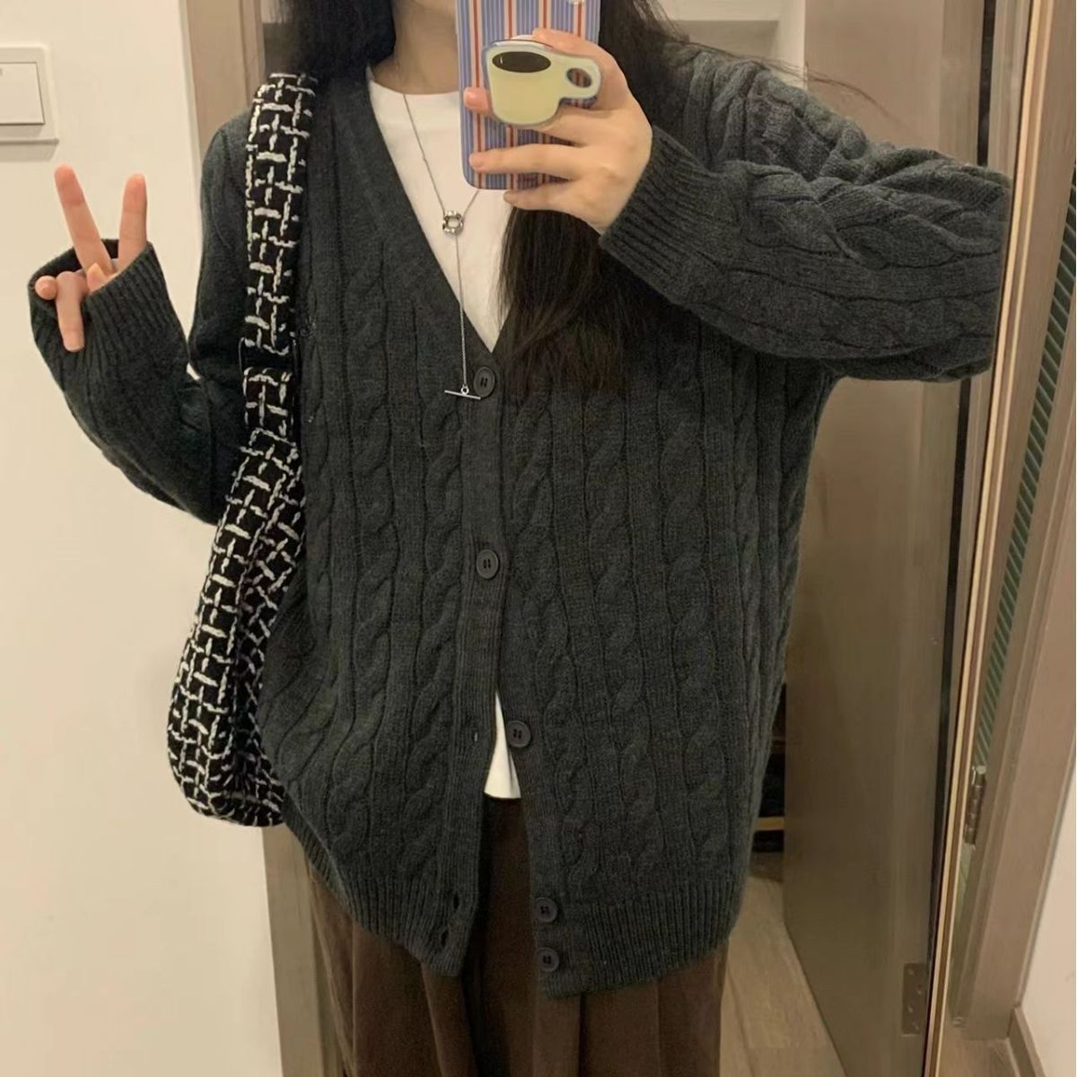 Главная страница > Серый Берлинский свитер-кардиган с V-образным вырезом, женское осенне-зимнее пальто, ленивый стиль, свободный мягкий вощистый свитер в стиле ретро