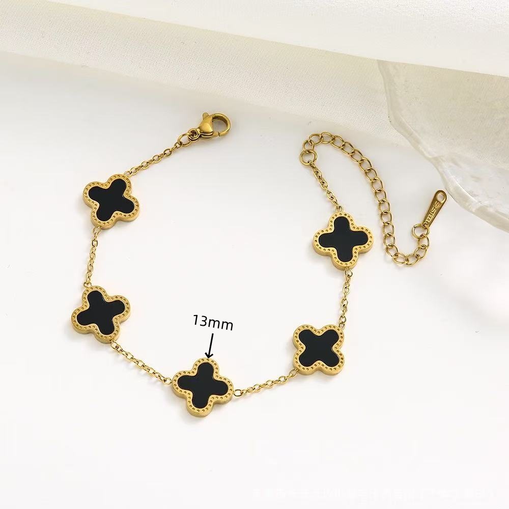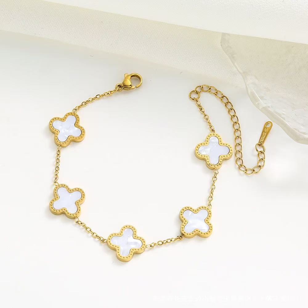 Главная страница > Новый европейско-американский браслет из титановой стали с двусторонним изображением четырехлистного клевера, не тускнеющий, простой и универсальный, с пятью цветами из перламутра, на удачу, новая модель 2024 года.