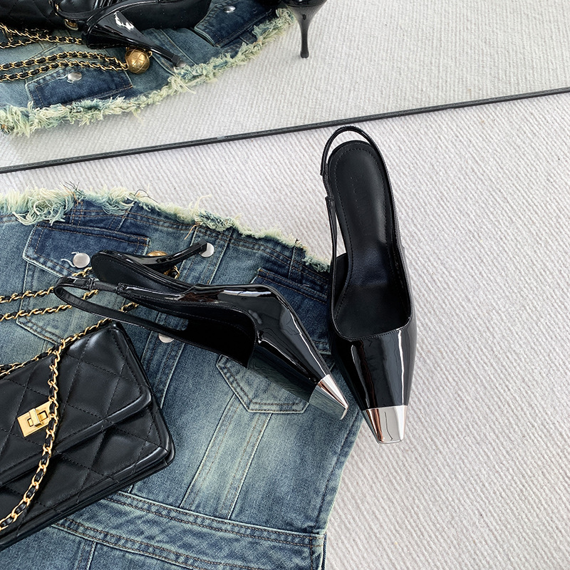 Главная страница > Туфли Spot A201 на высоком каблуке, туфли на шпильке, женственные, лето 2023, черные, высококачественные, красивые и нержавеющие босоножки на высоком каблуке.