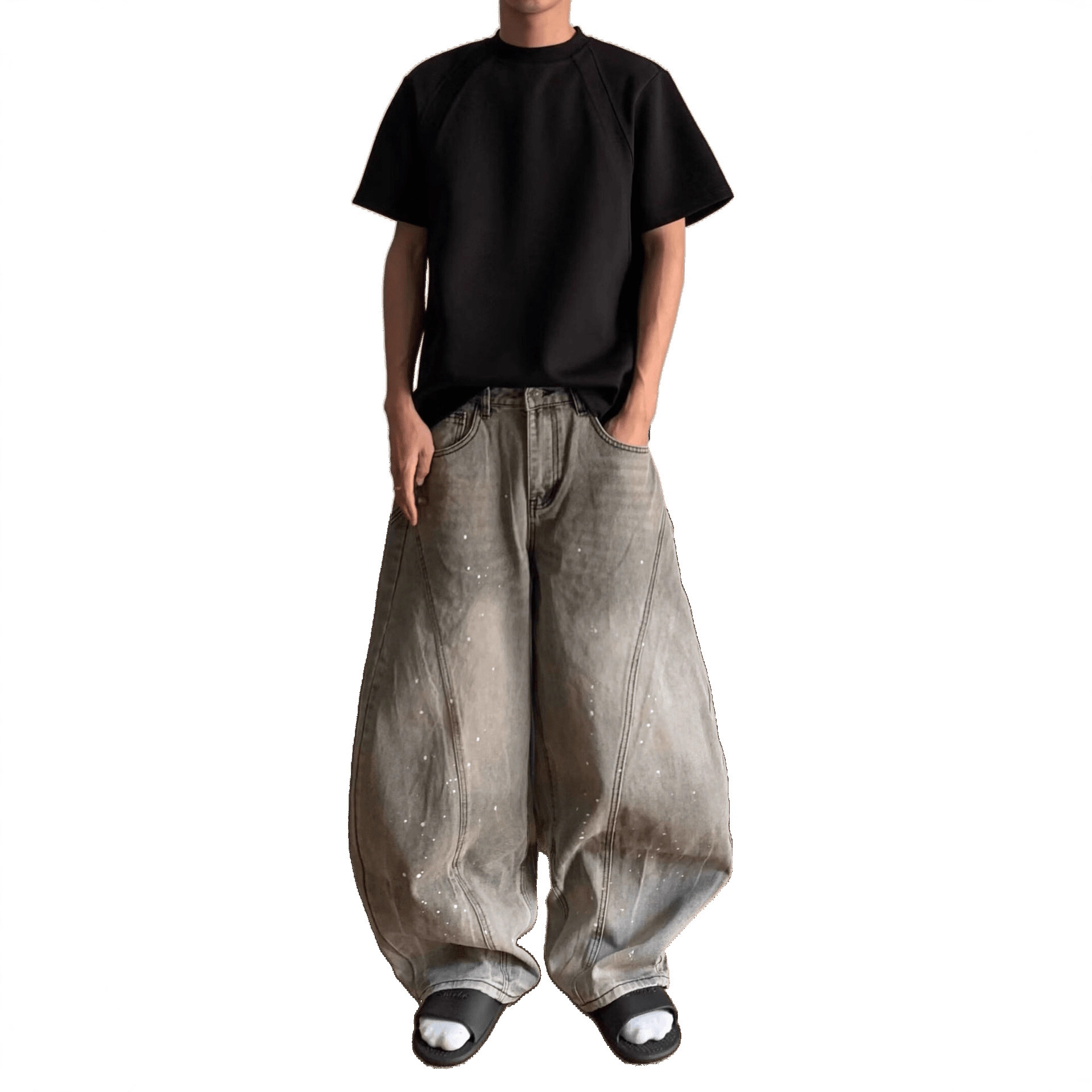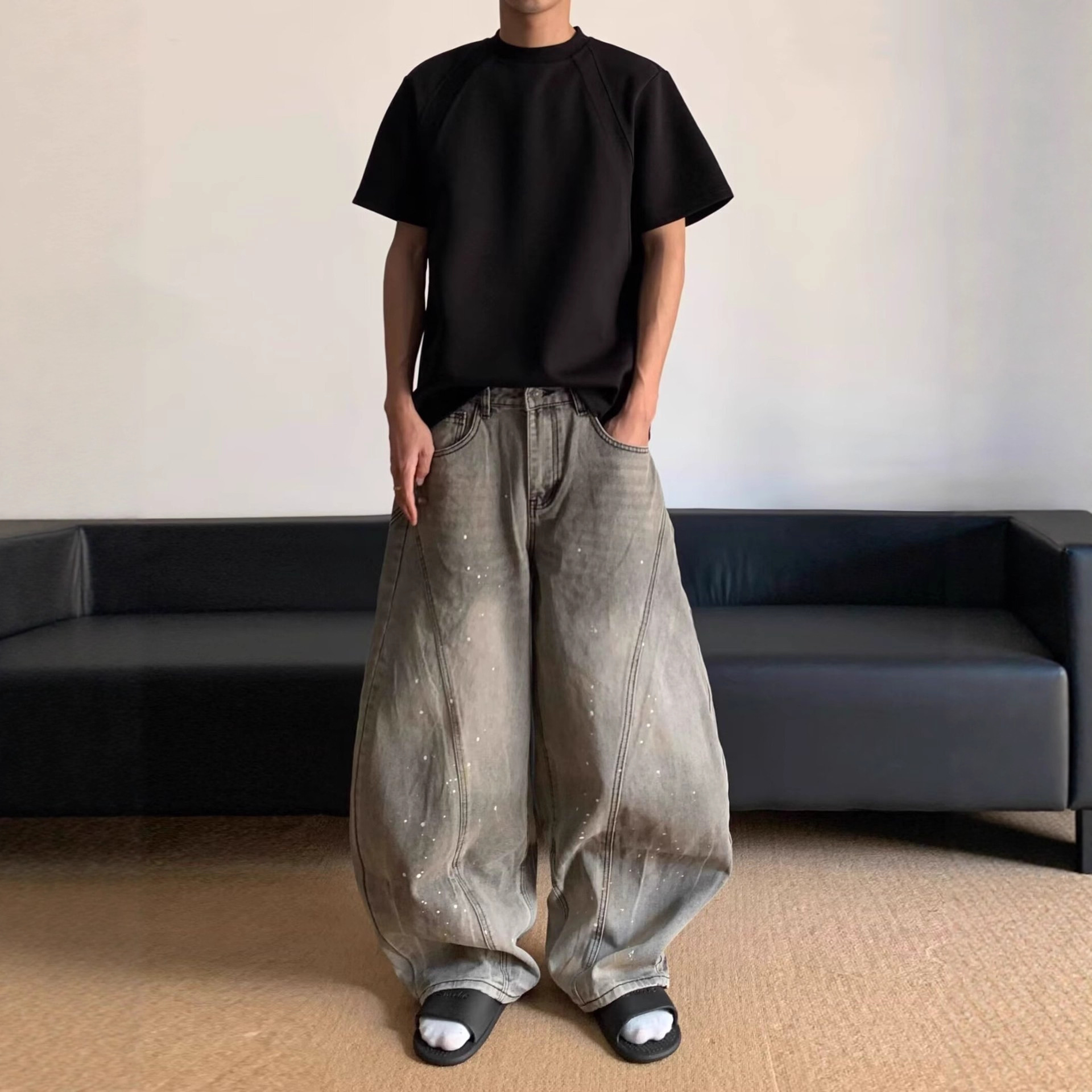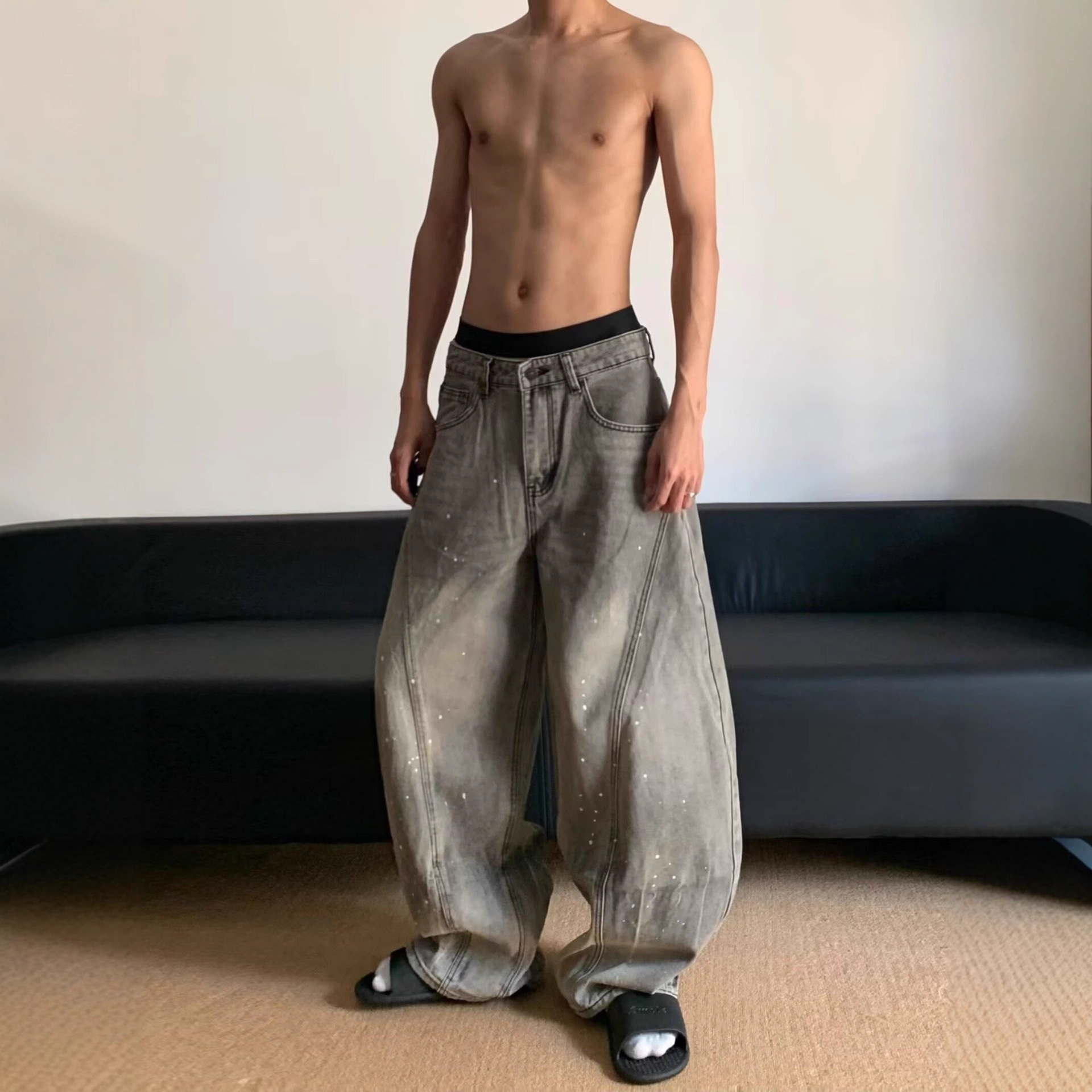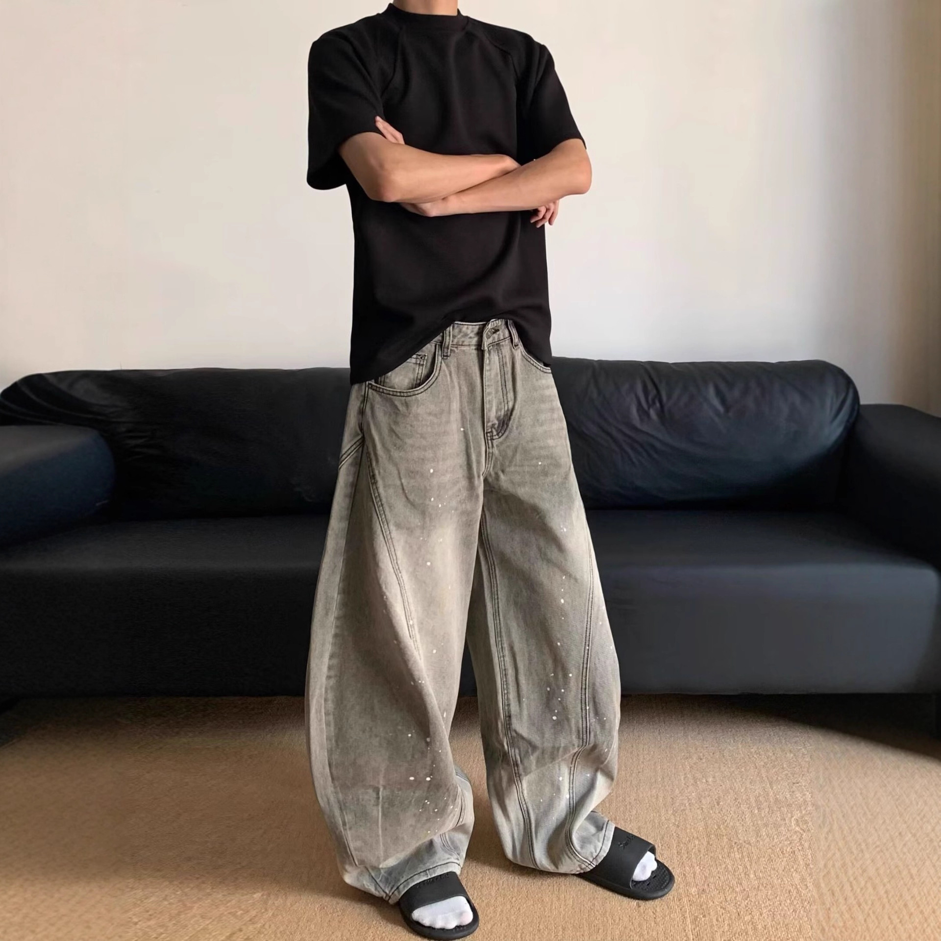 Главная страница > Мужские потертые джинсы цвета дымчато-серого цвета в стиле ретро, свободные прямые широкие брюки длиной до пола.