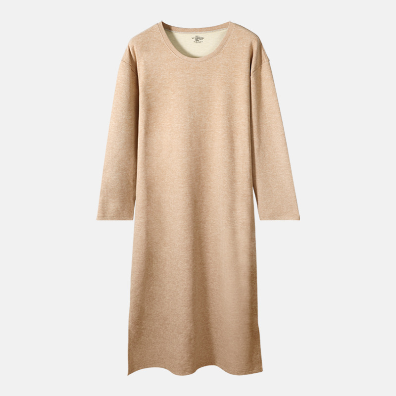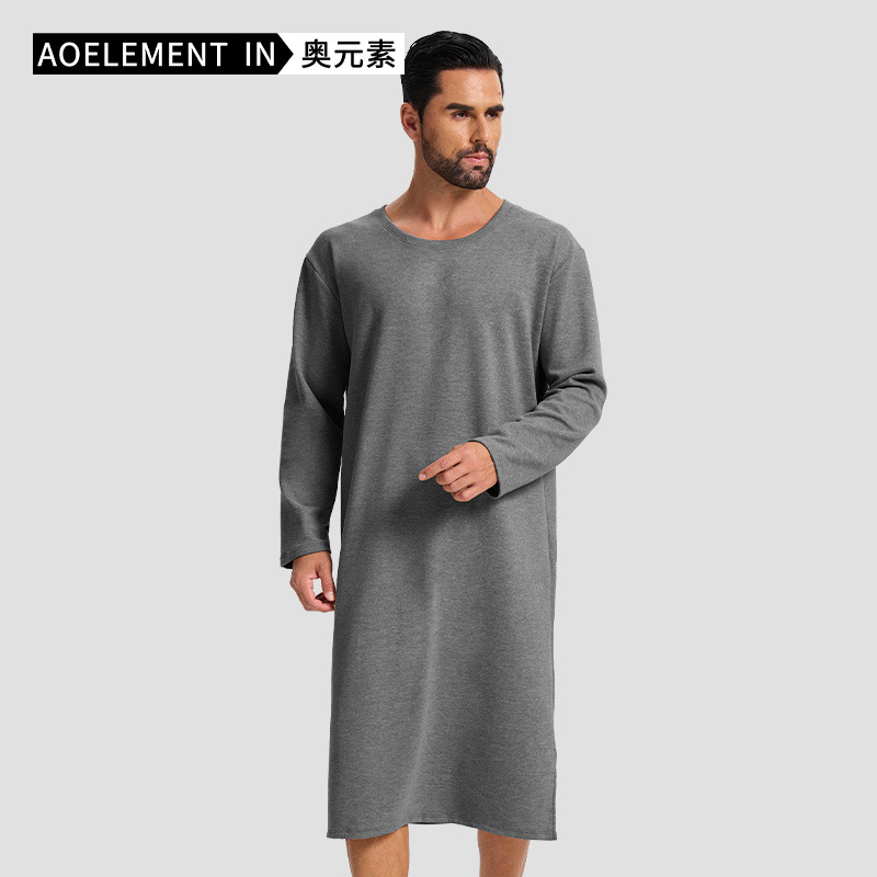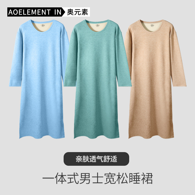 Главная страница > Мужская осенне-зимняя цельная ночная рубашка с длинными рукавами, халат до колена, длинная ночная рубашка, универсальная домашняя одежда, шерстяные шелковые пижамы.