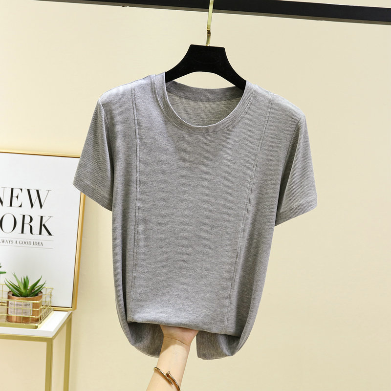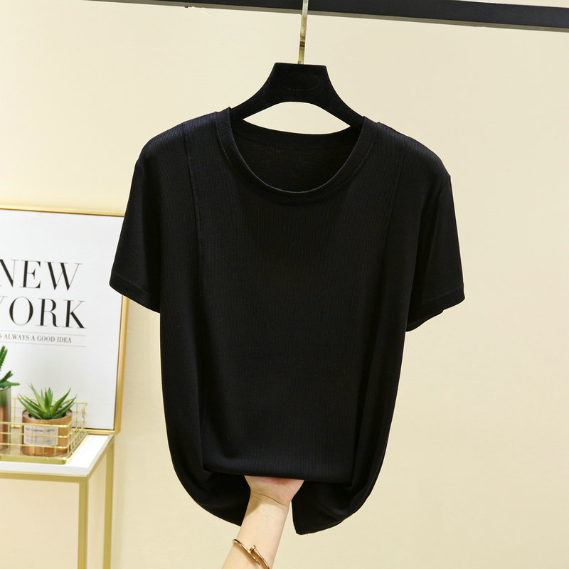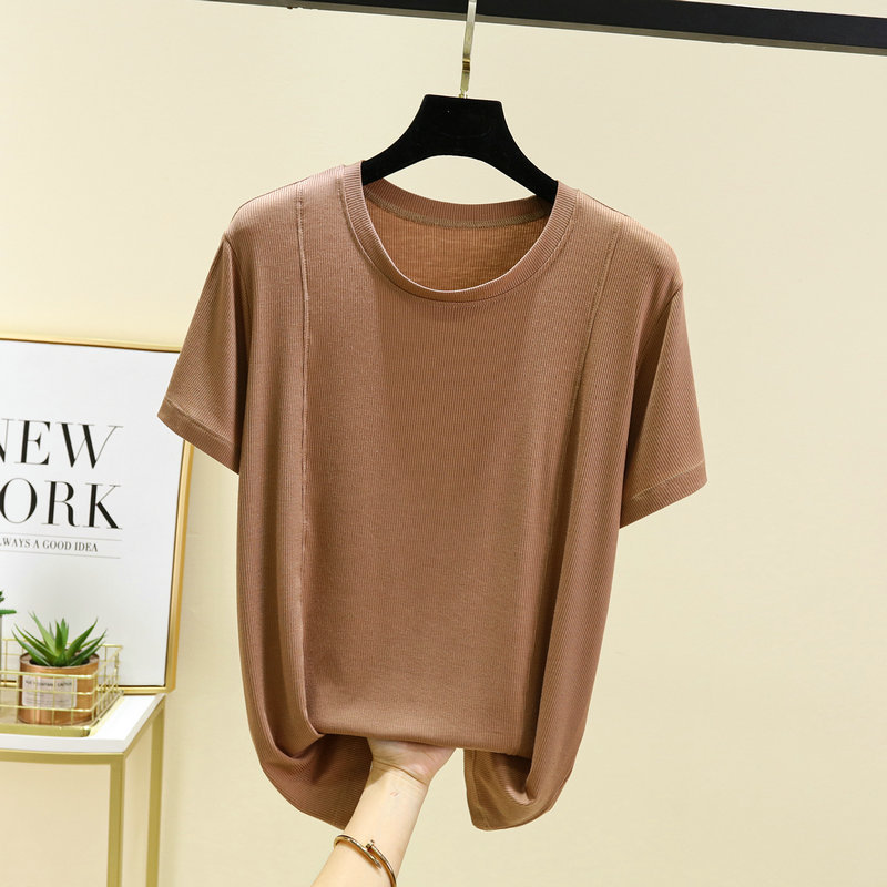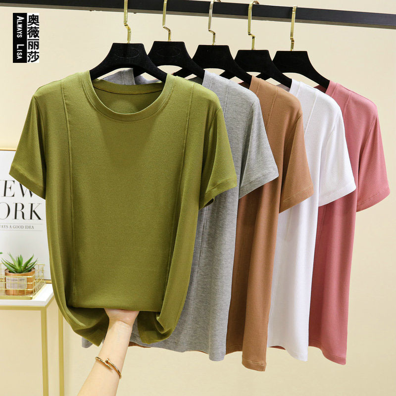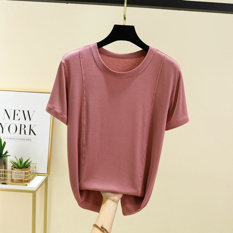 Главная страница > Женская Футболка-маска с модальной нитью, свободная футболка с короткими рукавами и круглым вырезом, Летний Тонкий Элегантный Приталенный топ