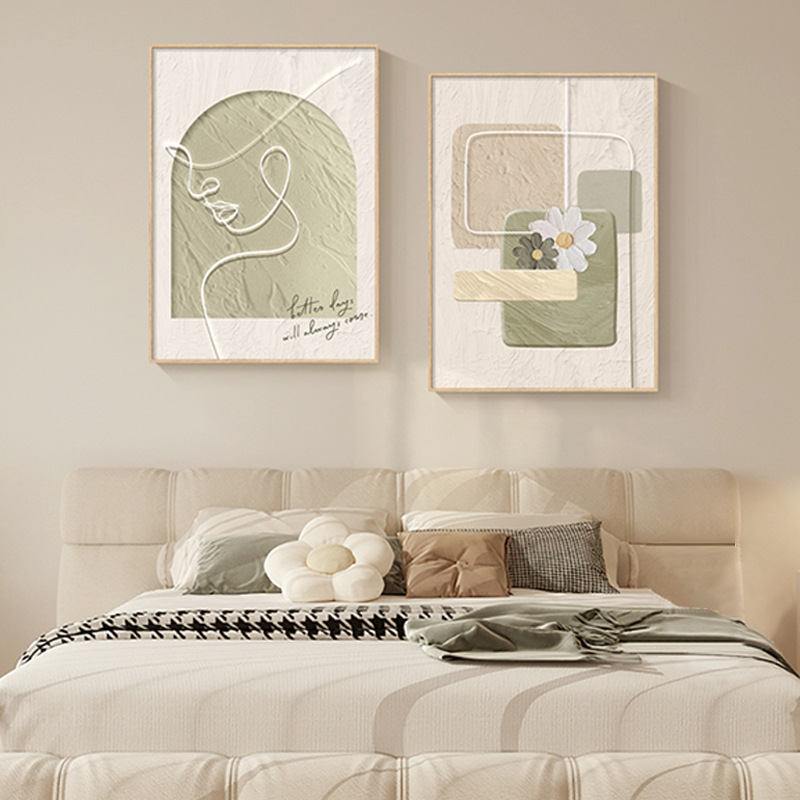 Скандинавская кремовая спальня декоративная живопись искусство абстрактная главная спальня прикроватная роспись цветочная текстура ресторана двойной фрески