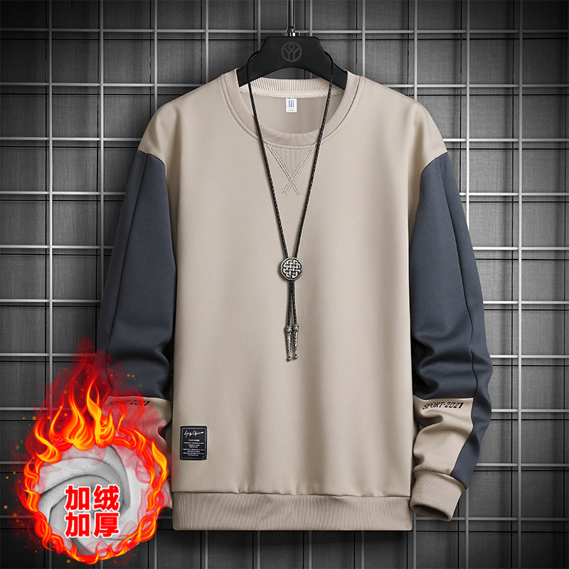 Сколотый свитер мужской весенний и осенний прилив свободный круглый воротник с длинным рукавом футболка нижняя рубашка зимний бархатный свитер