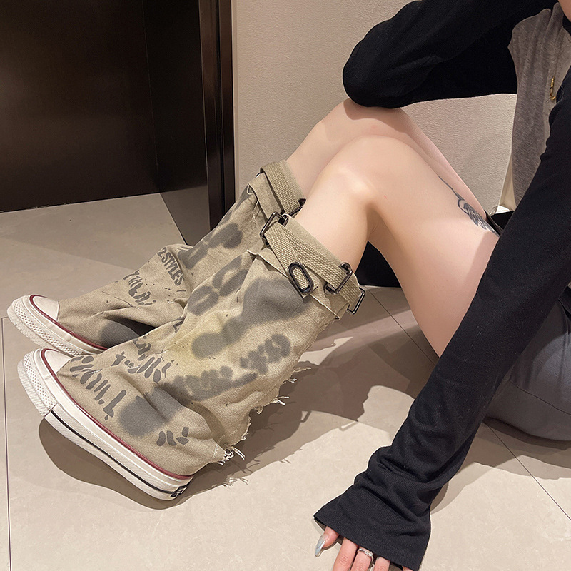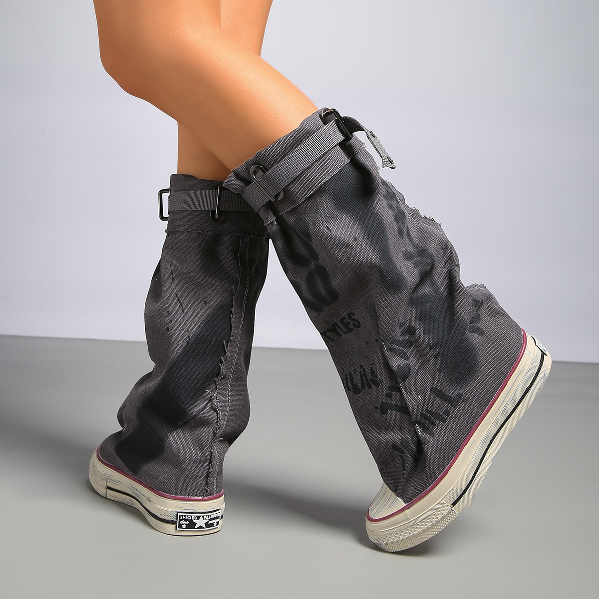 Главная страница > Женские ботинки, новые ботинки до середины икры с граффити на плоской подошве в стиле ретро, сексуальные ботинки Trbottomyy, большие размеры, внешняя торговля, модные ботинки с ворсом, трансграничные ботинки