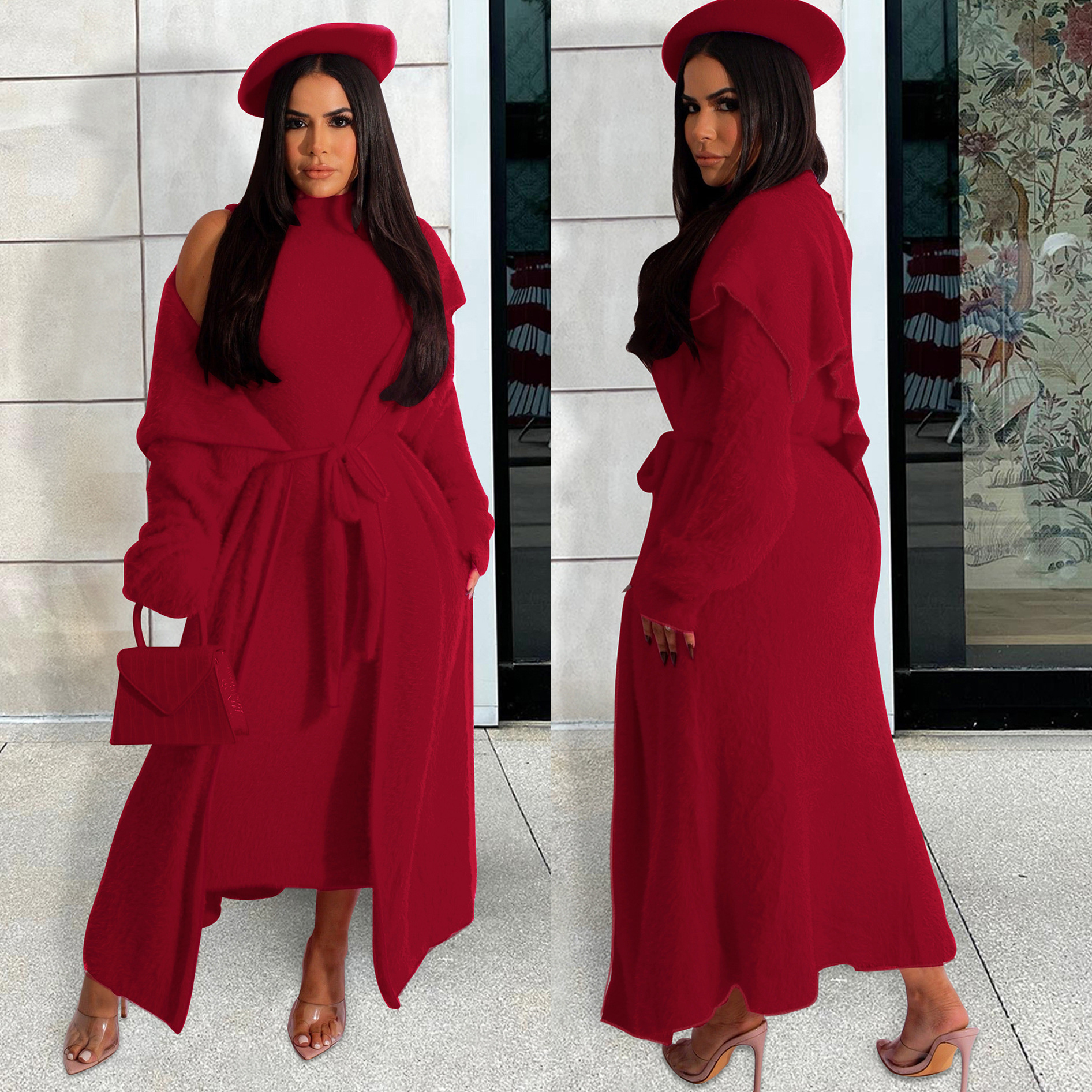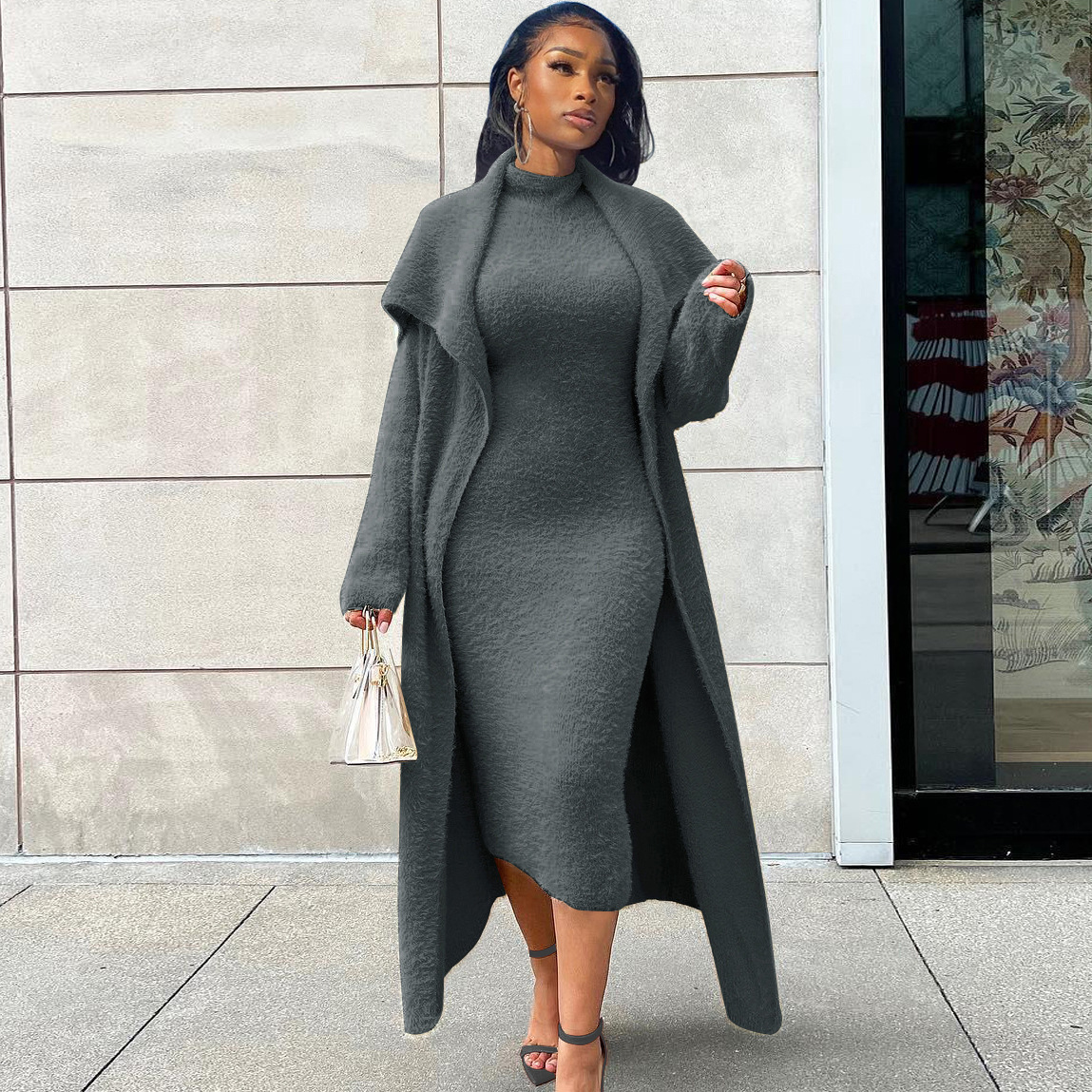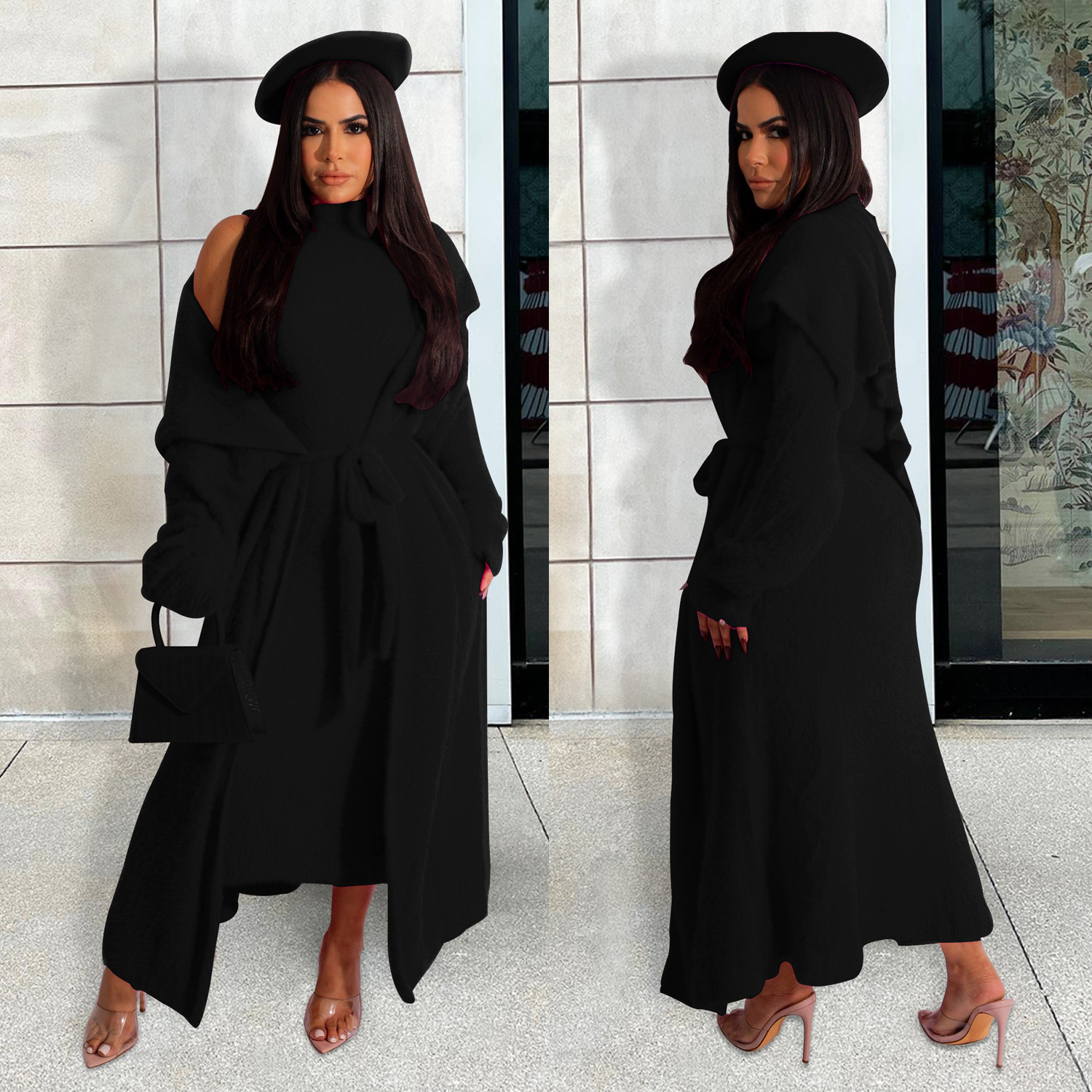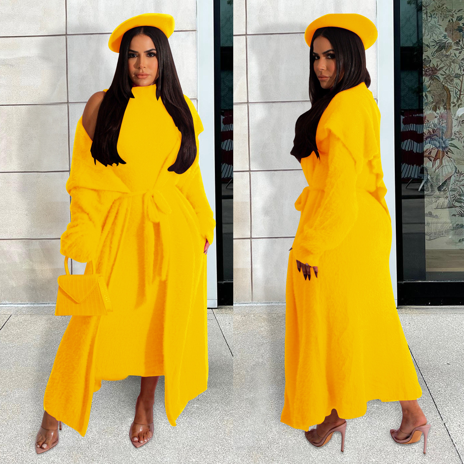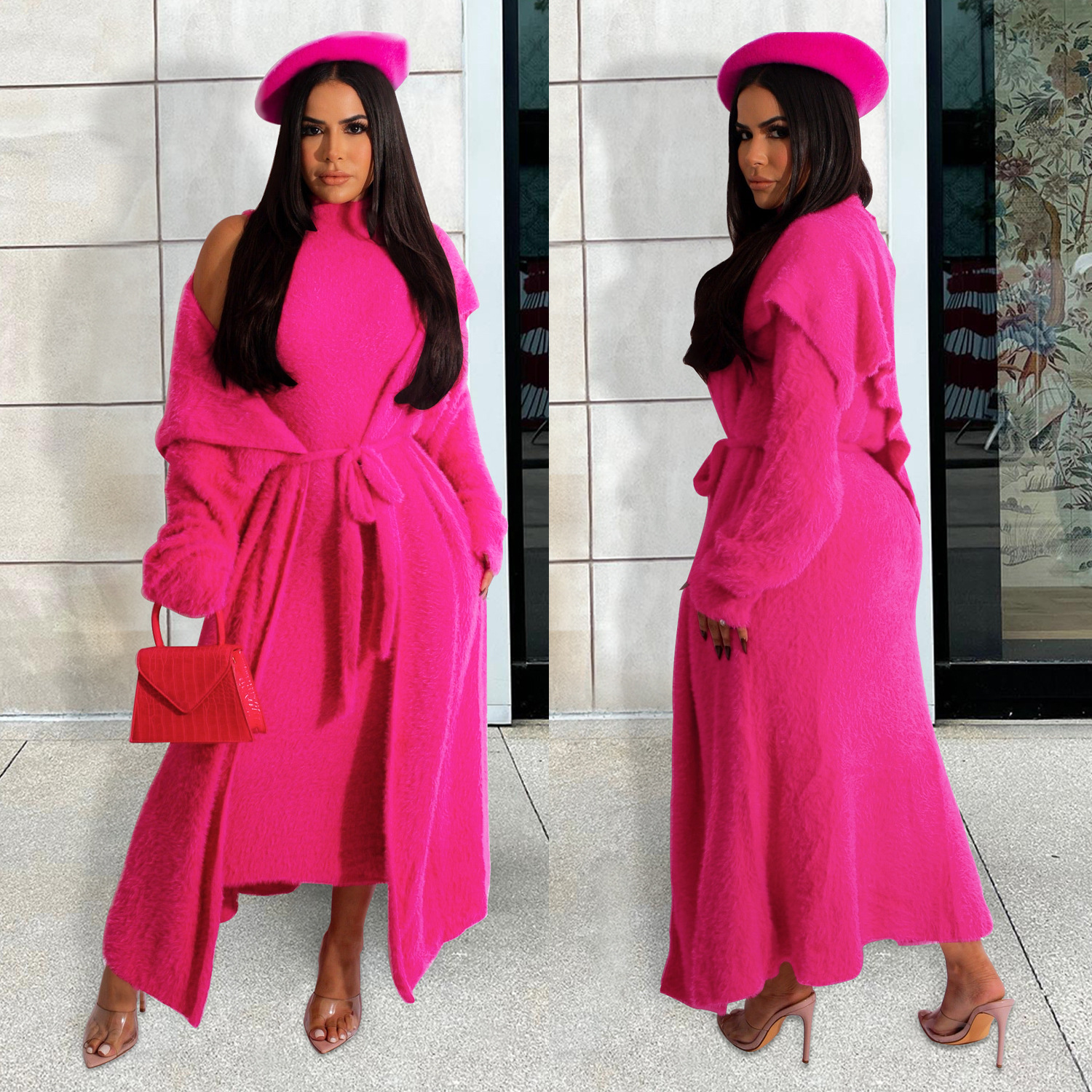 Главная страница > BT19484 Трансграничное платье Амазонки осень/зима пальто из двух частей свободный пояс длинный кардиган флисовый костюм