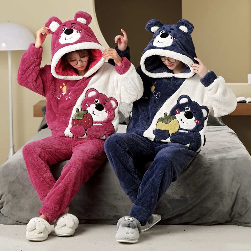 Главная страница > Осенний и зимний коралловый бархат пара пижамы женщины фланелевый мультфильм милый женский набор зимняя мужская домашняя одежда