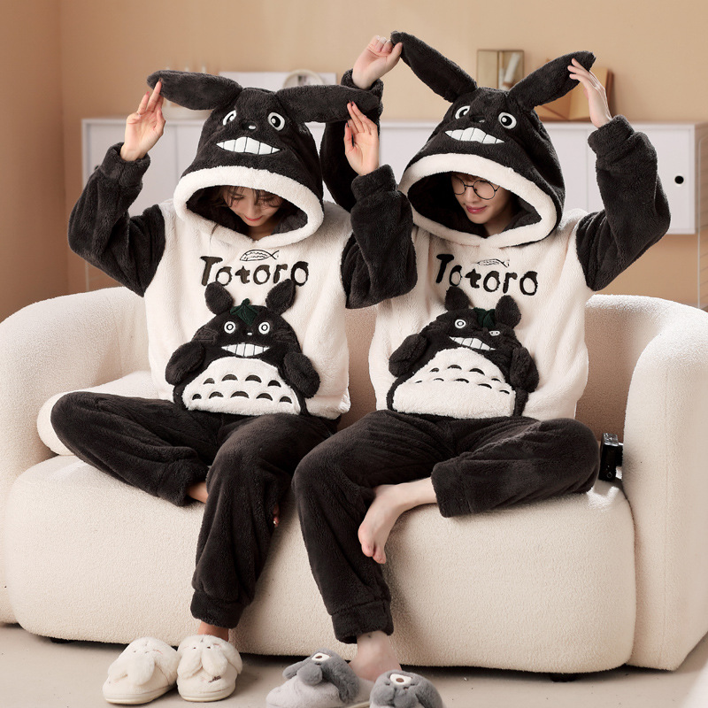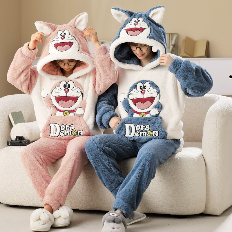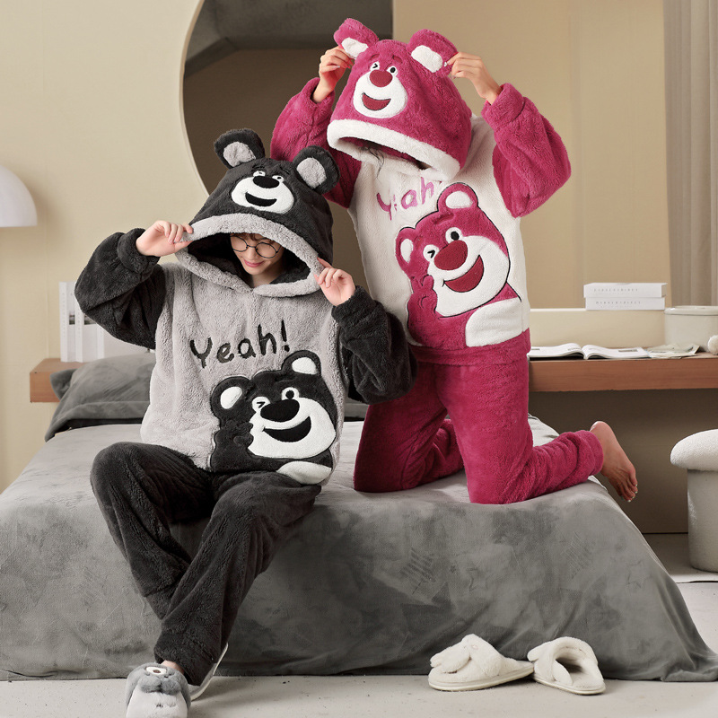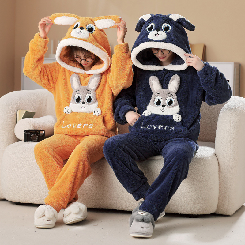 Осенний и зимний коралловый бархат пара пижамы женщины фланелевый мультфильм милый женский набор зимняя мужская домашняя одежда
