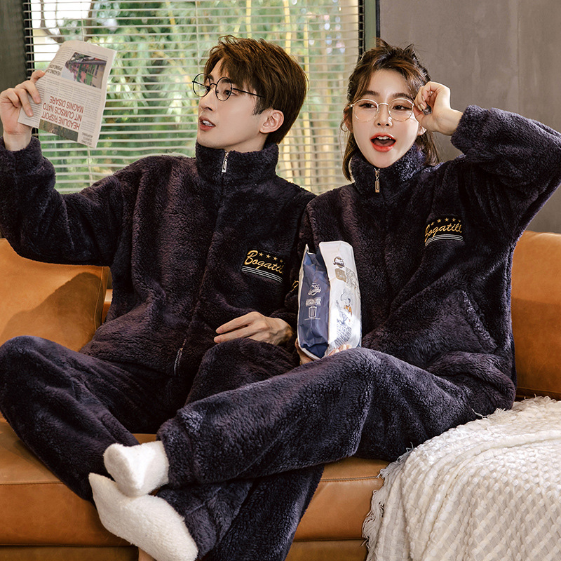 Главная страница > Осенне-зимние пижамы для пар из кораллового флиса, теплый высококачественный фланелевый костюм, мужская и женская плюшевая верхняя одежда, домашняя одежда