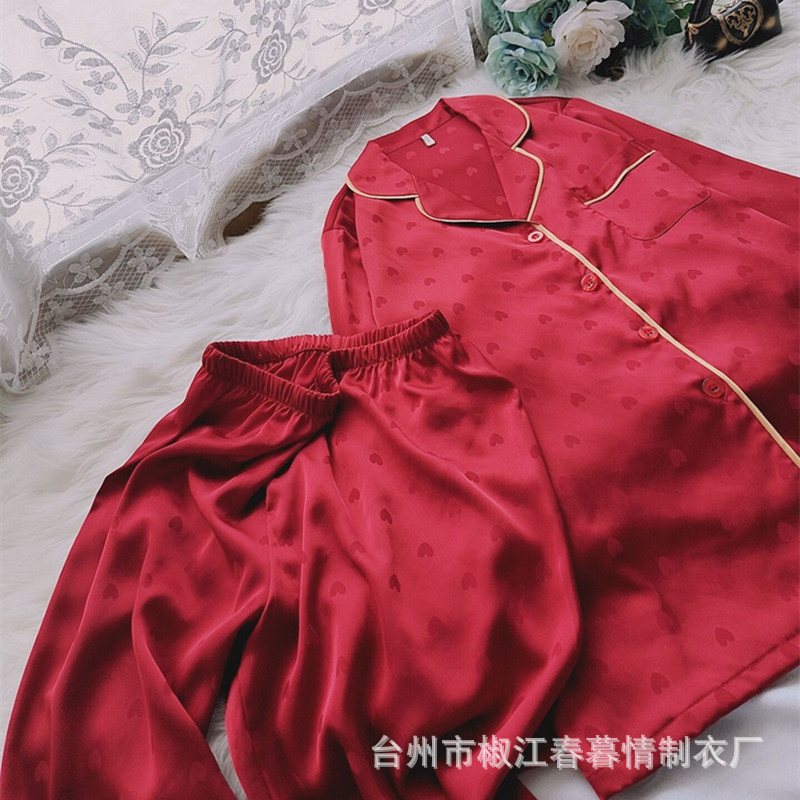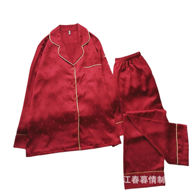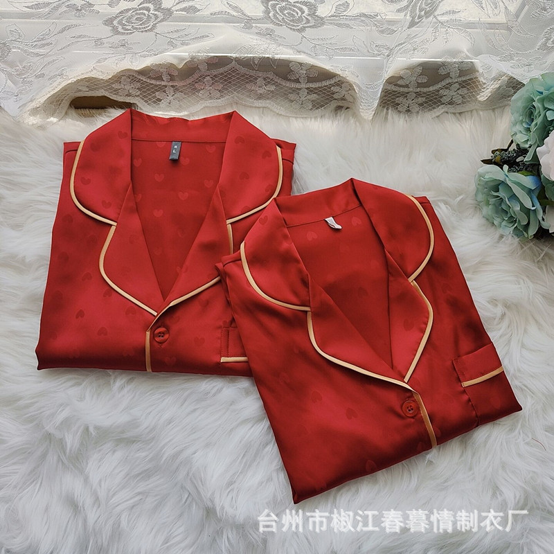 Главная страница > Новая Бенинская пижама из красного ледяного шелка для невесты, новобрачная пара, любящий костюм с длинным рукавом, домашняя одежда для жениха для мужчин