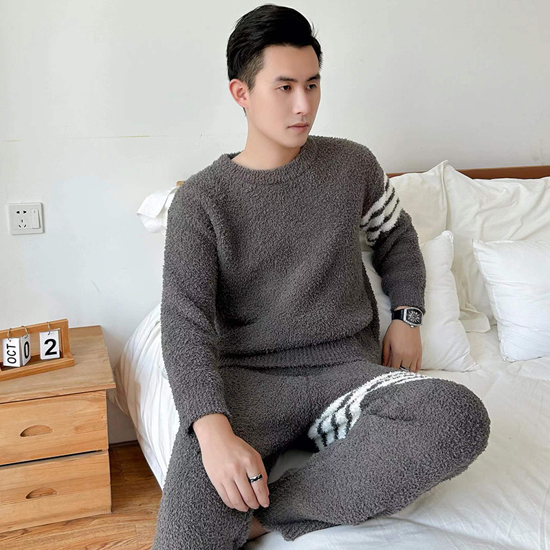Главная страница > Мягкая Пижама с половинной стороны, бархатная теплая утолщенная Домашняя одежда, мужской барный костюм для пары, домашняя одежда, комплект из двух предметов