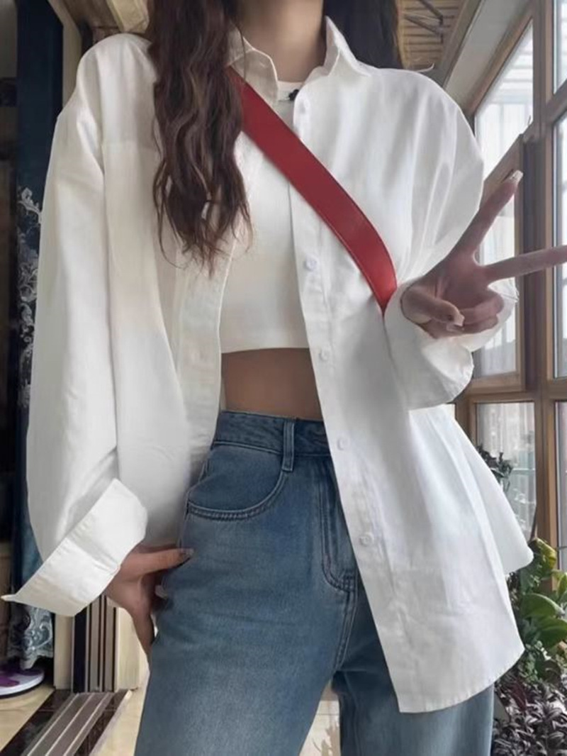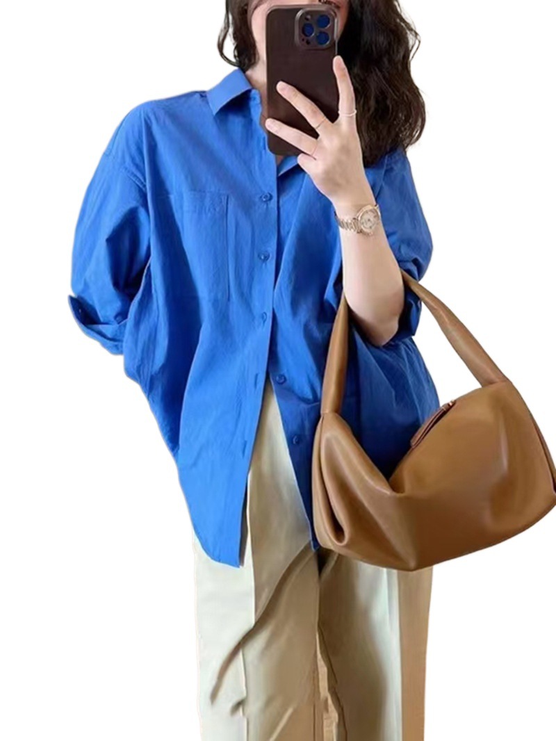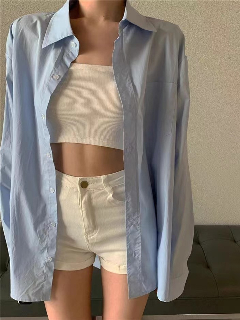 Главная страница > Женские рубашки с многослойными топами для весны и лета в корейском стиле, свободные солнцезащитные рубашки с воротником-поло и длинными рукавами, куртки