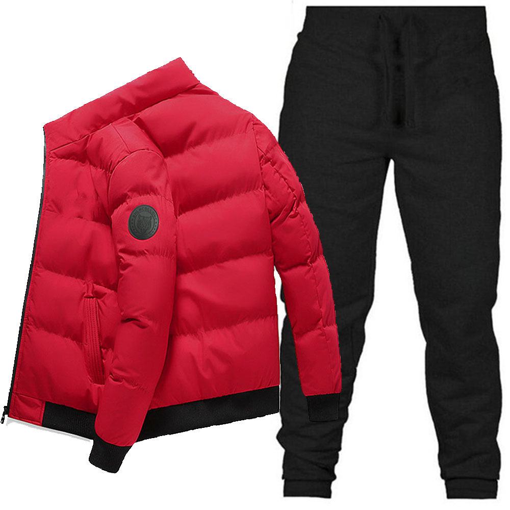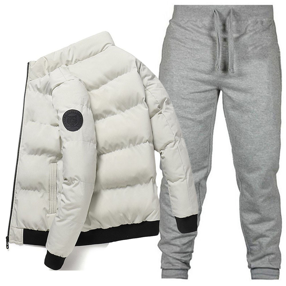 Главная страница > Мужской брючный костюм с хлопковой подкладкой, зимняя утолщенная теплая куртка с воротником-стойкой, Модный повседневный спортивный трансграничный костюм