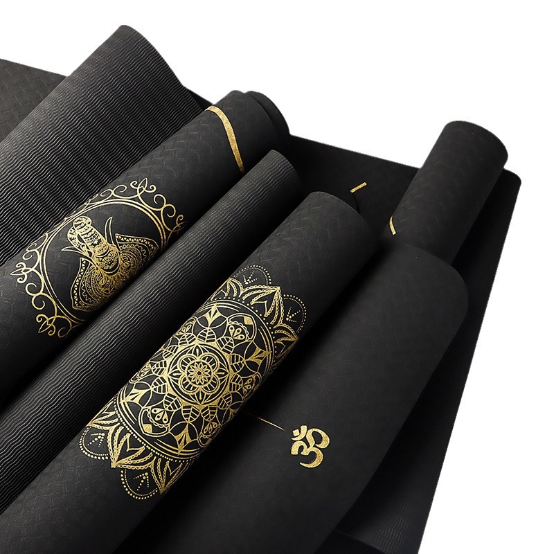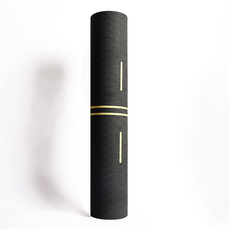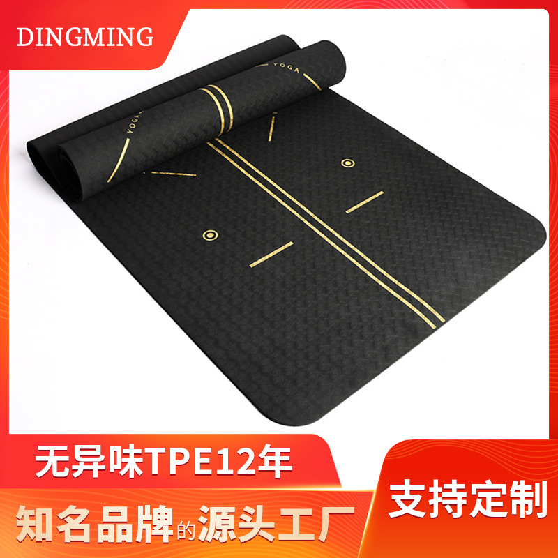 Коврик для йоги из ТПЭ для домашнего использования с золотыми и серебряными линиями для корректной осанки, расширенный спортивный черный фитнес-мат для мужчин оптом