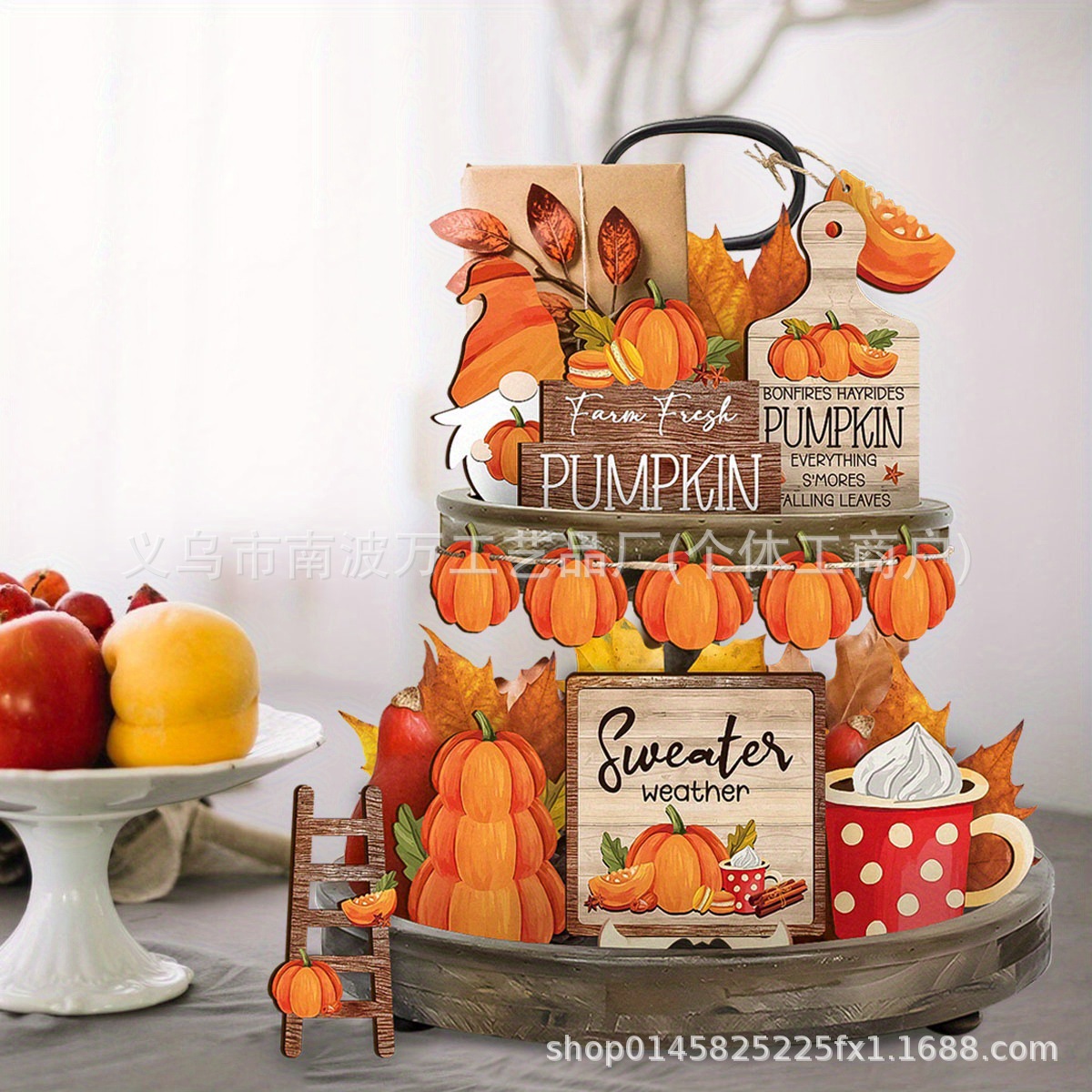 Декоративный многоярусный поднос в стиле фермерского дома, деревянный летний многоярусный поднос, поднос-грузовик, поднос с гномом, настольная табличка