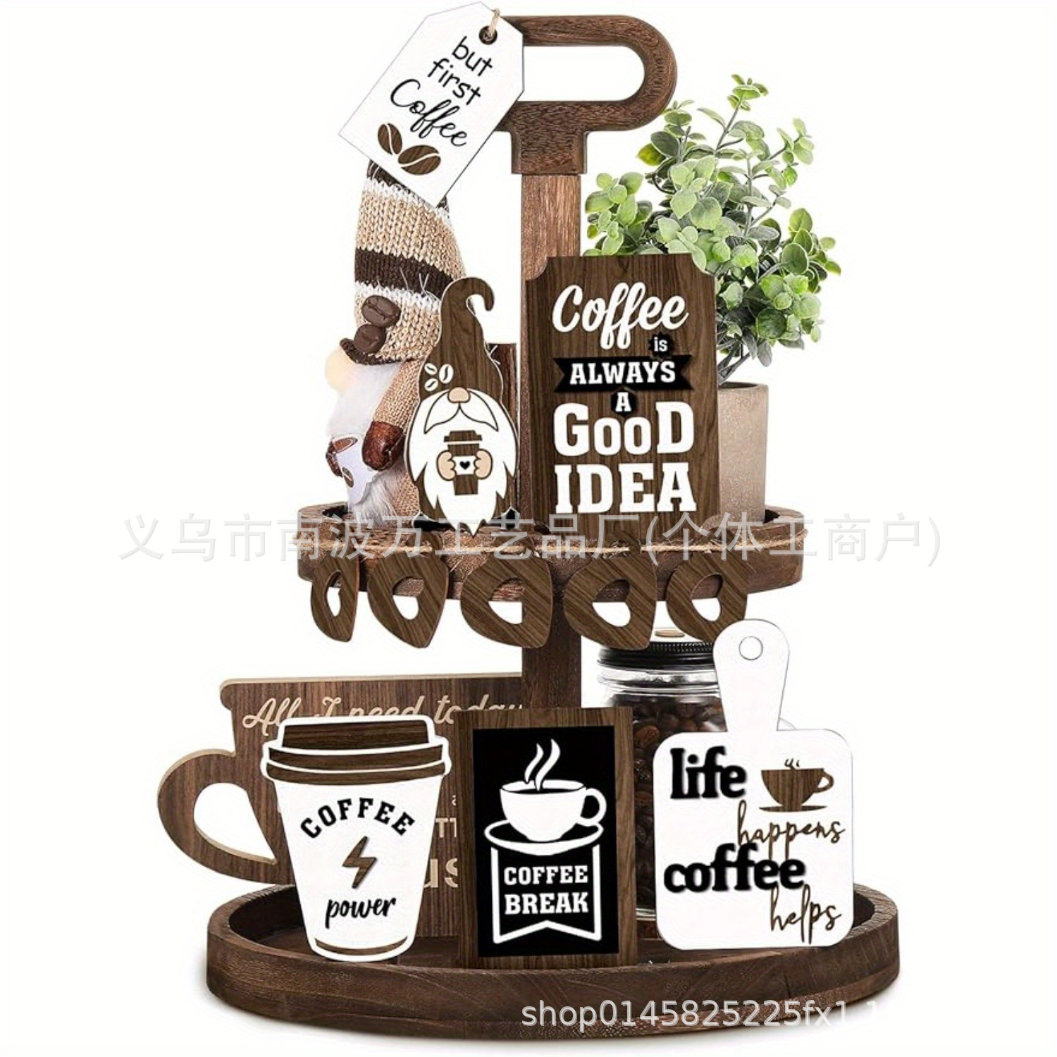 Набор декора для многослойного подноса, мини-деревянная вывеска для кофе в деревенском стиле, декор для кофейной чашки с гномом, винтажная вывеска для кофе