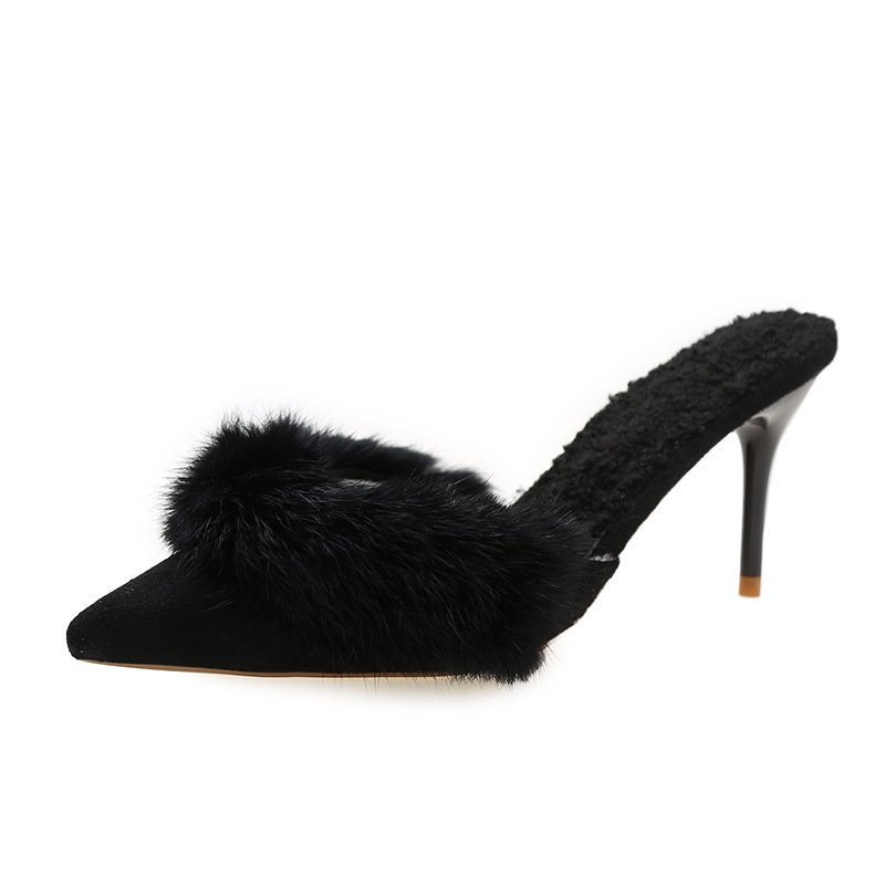 Главная страница > Женские меховые тапочки на высоком каблуке, модная верхняя одежда, новый стиль 2025, острый носок, каблук-шпилька, женские полутапочки Baotou Mule, модные