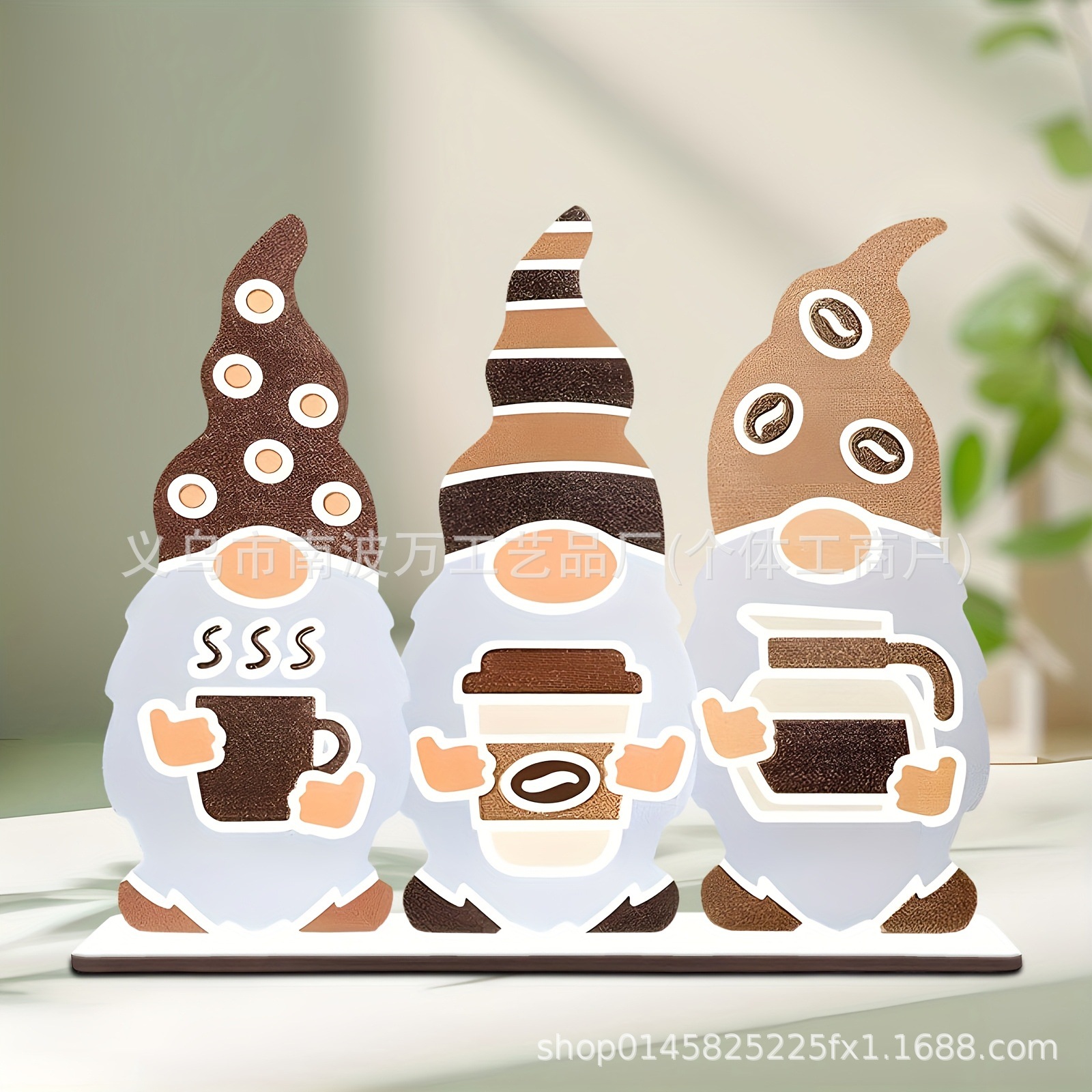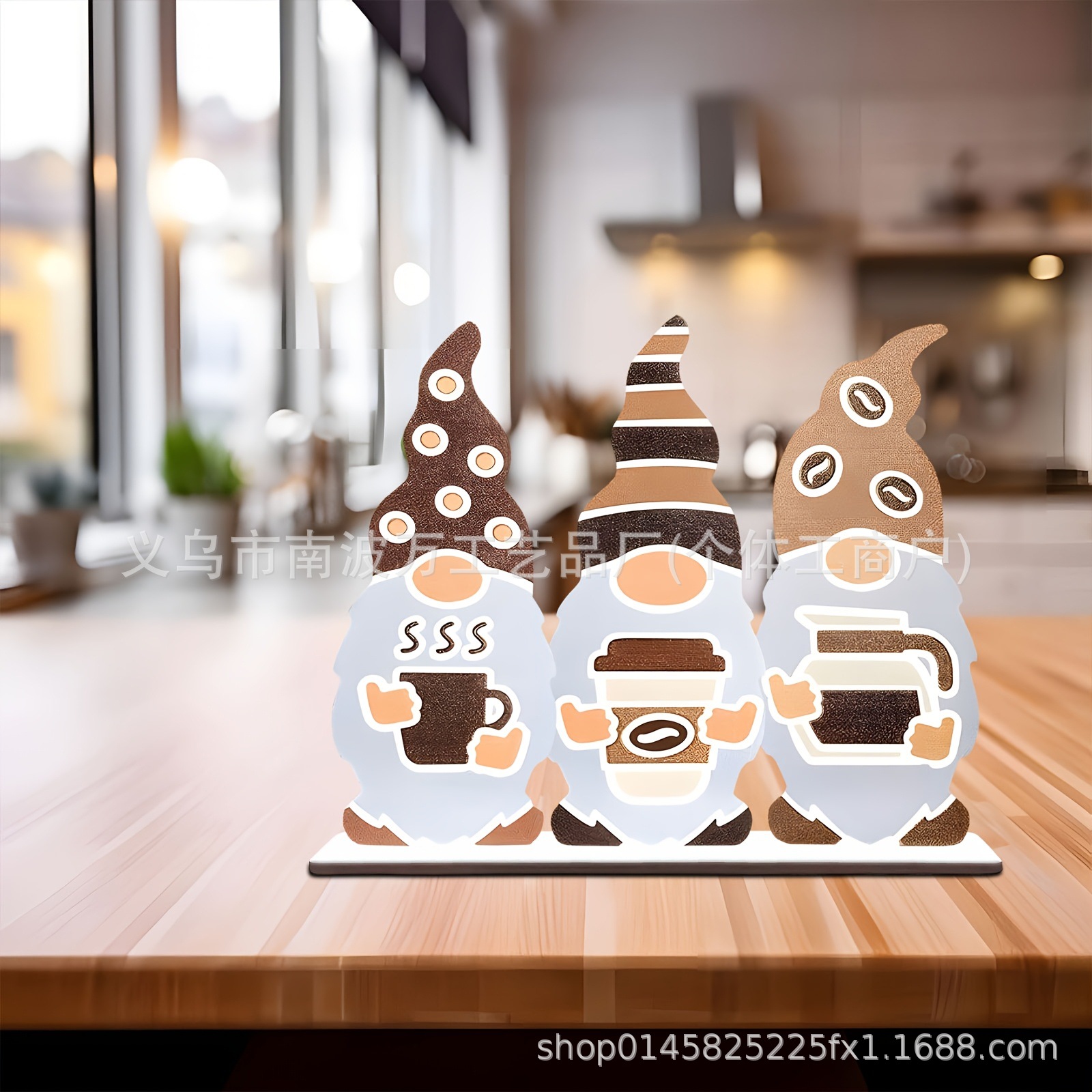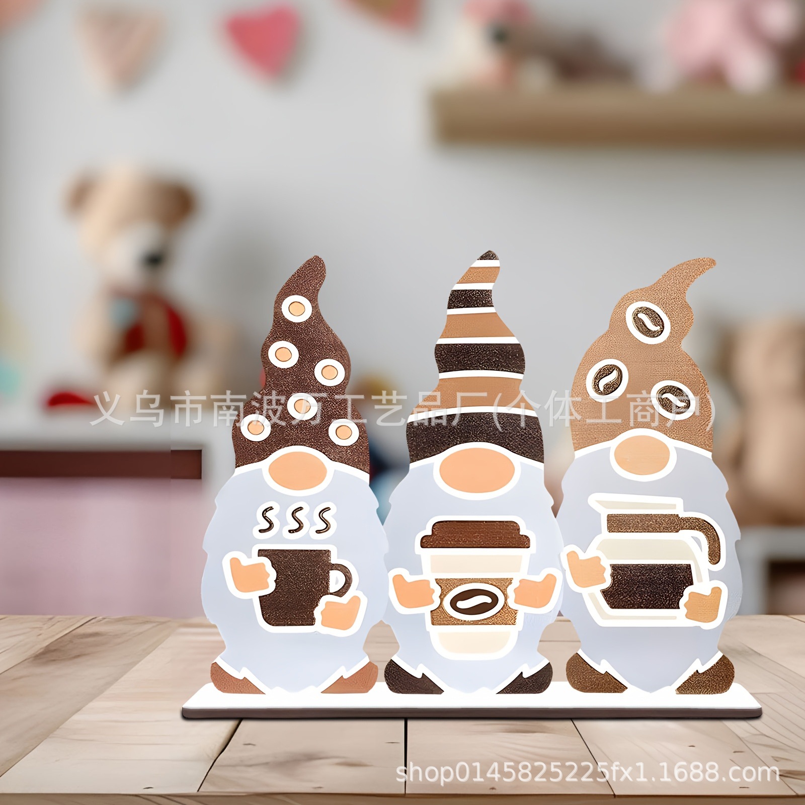 Главная страница > Декор для кофейни в скандинавском стиле "Деревенский домик": многоярусный поднос из искусственного дерева с забавными фигурками гномов