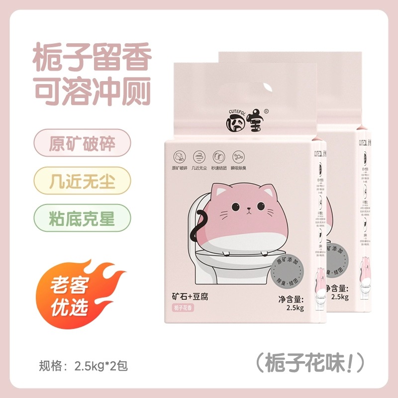 Наполнитель для кошачьего туалета Jiubao «четыре в одном», мгновенно комкующийся, смываемый, без пыли, на основе натриевых минералов, с дезодорирующим эффектом (аналог тофу).