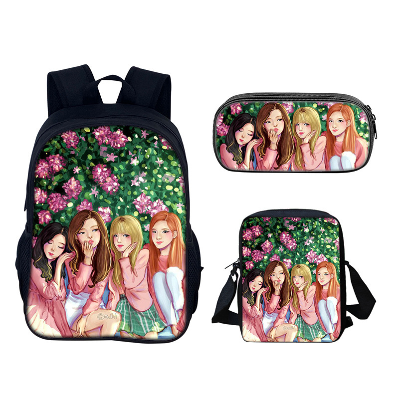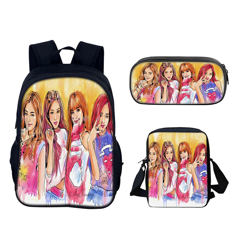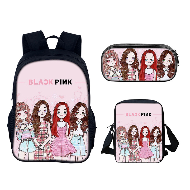 Главная страница > Новый black pink идол вокруг студенческих школьных сумок креативный набор из трех частей студенческий рюкзак