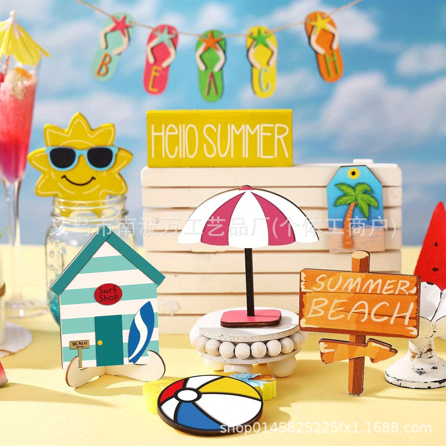 Летний гавайский многослойный набор украшений для подносов из 12 предметов, пляжные тапочки в деревенском стиле, деревянная вывеска, летние песочные украшения.