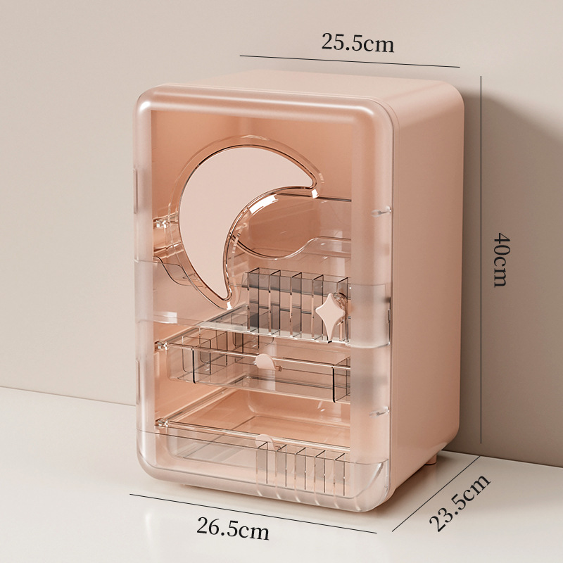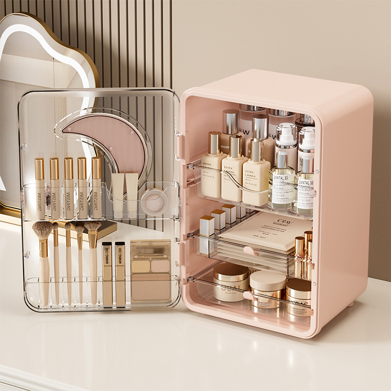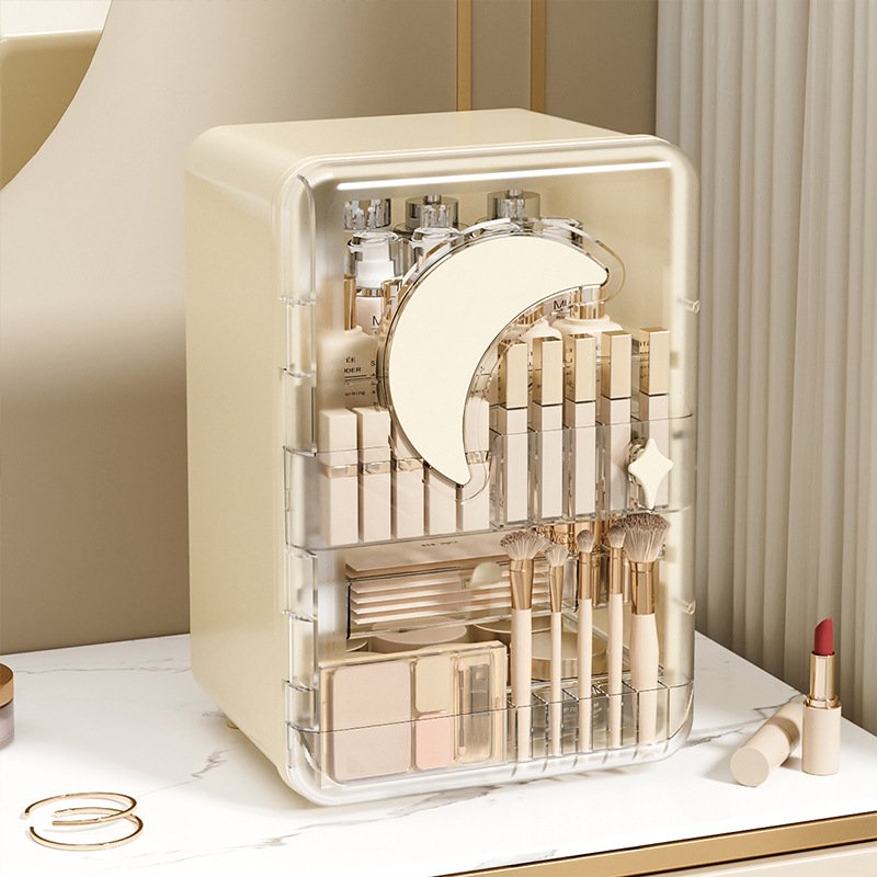 Главная страница > Легкий роскошный настольный ящик для хранения косметики, пылезащитный шкаф для хранения помады, ящик большой емкости, прозрачный косметический шкаф