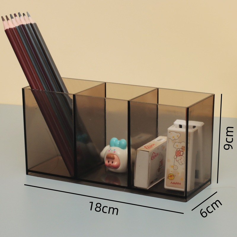 Прозрачный серый держатель для ручек с 3 отделениями [упаковка в одной коробке]