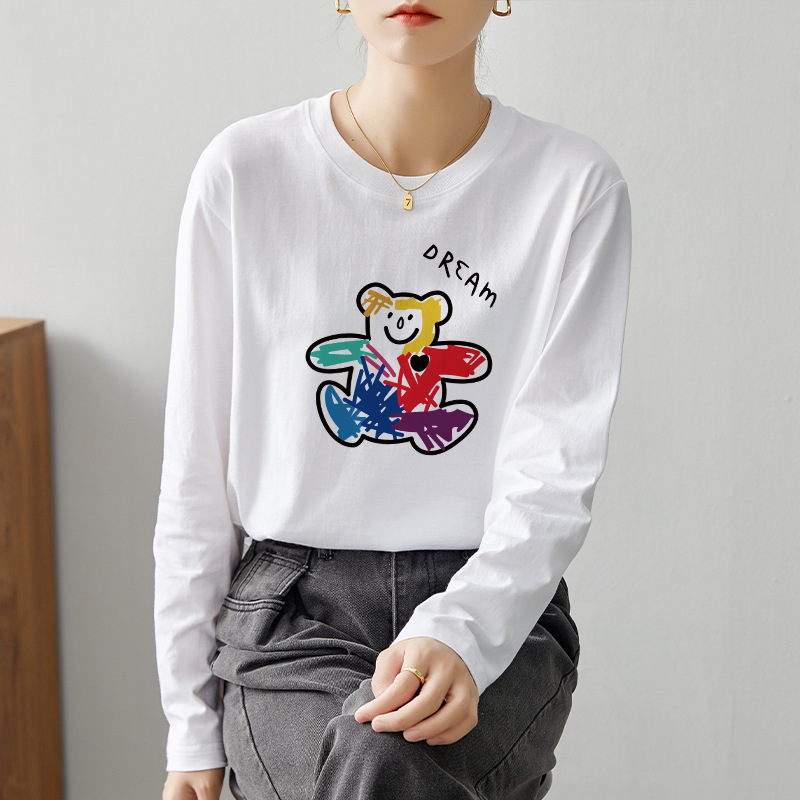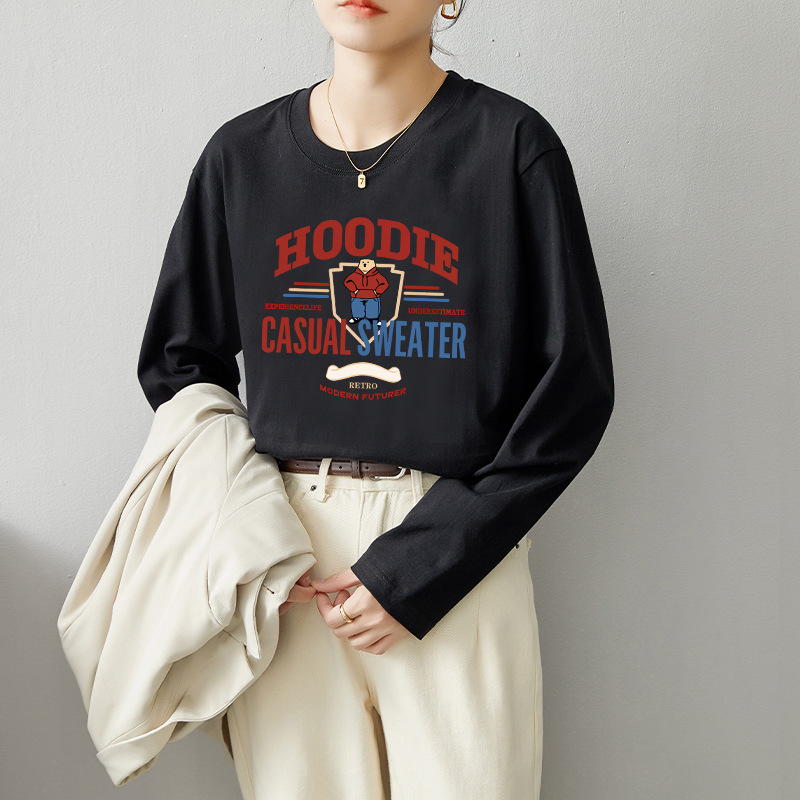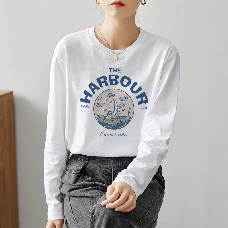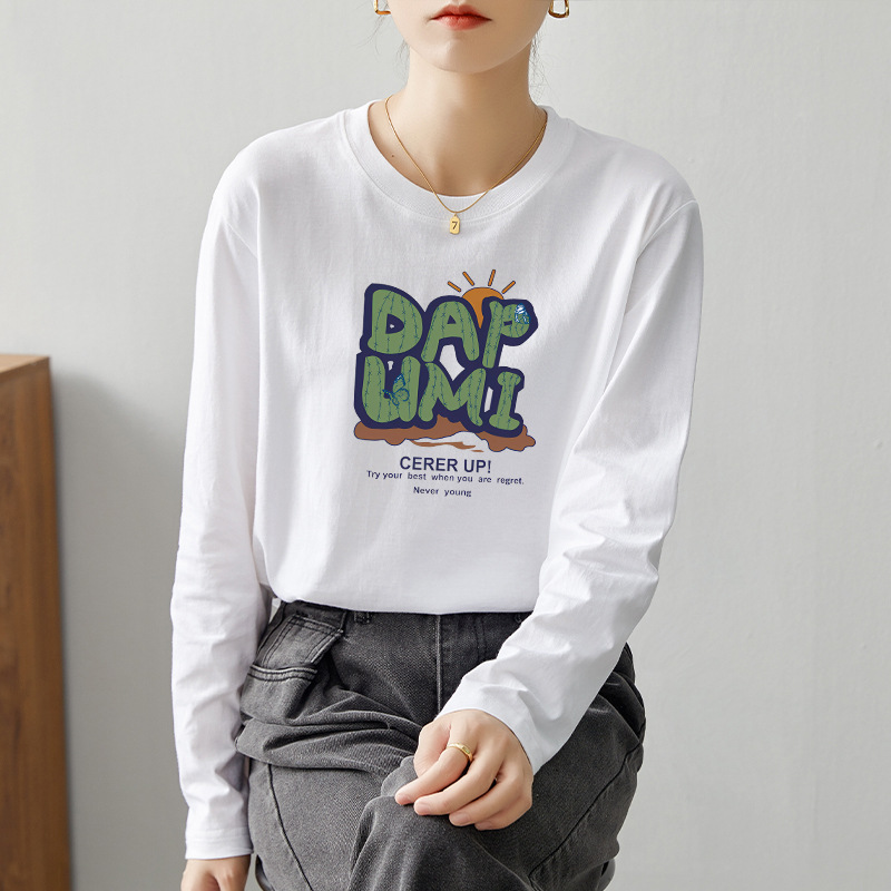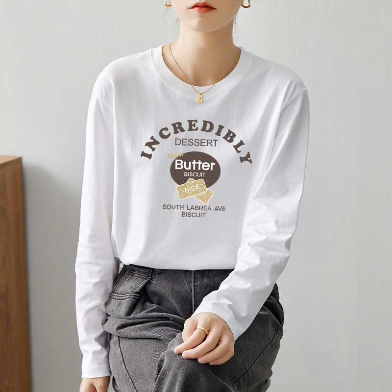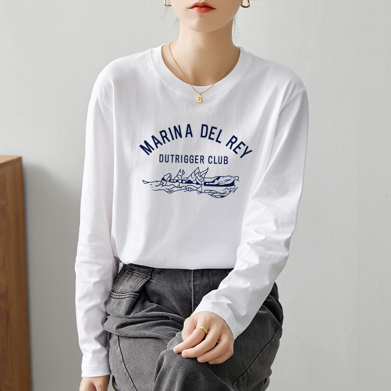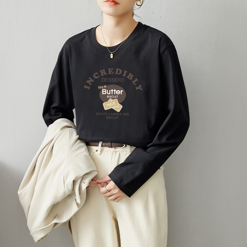 Главная страница > Женская футболка из чистого хлопка с длинным рукавом, осень 2024, свободного кроя, универсальная, с принтом, базовая футболка, топ, оптом, модный стиль