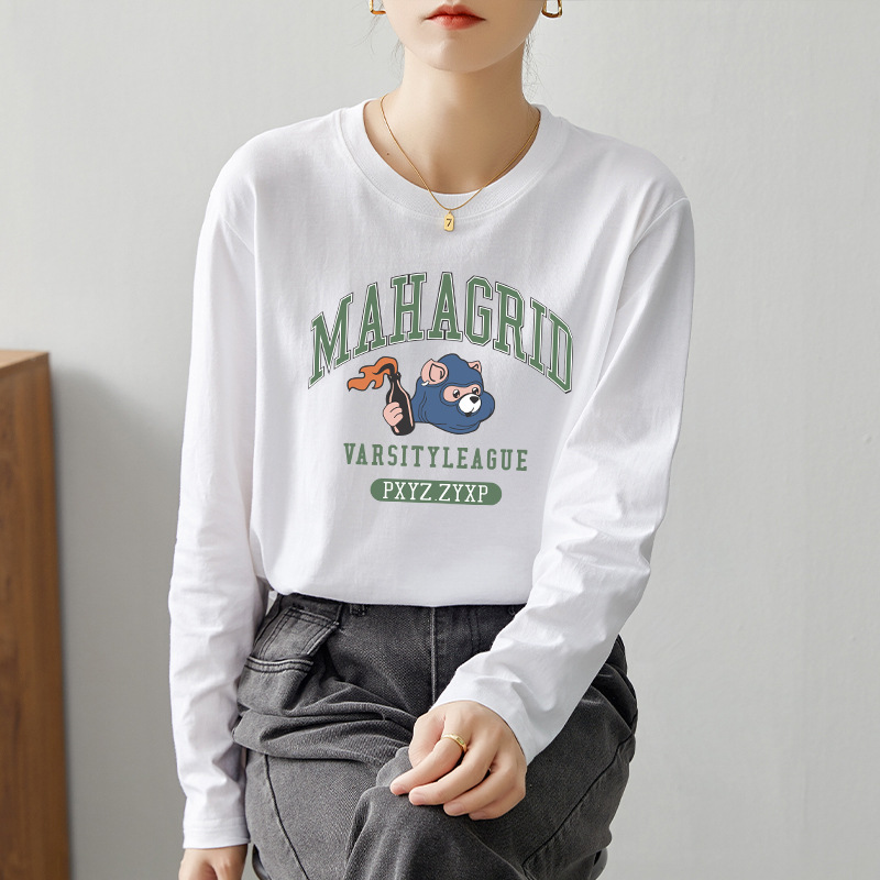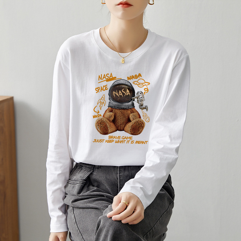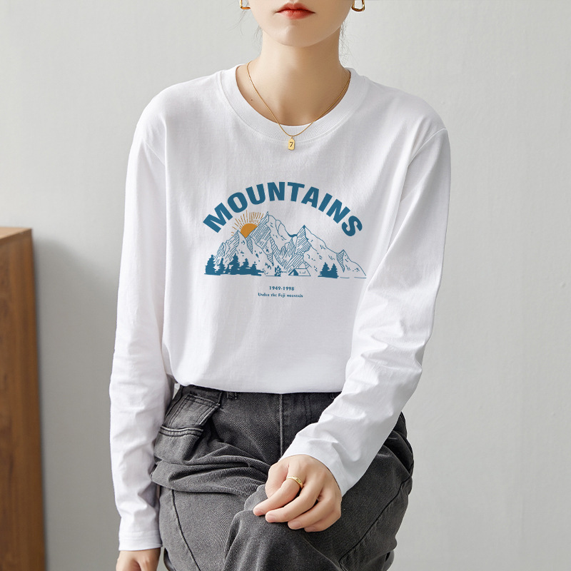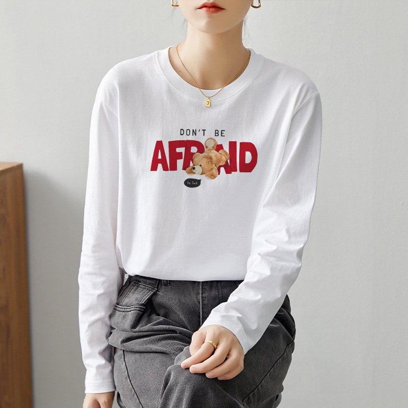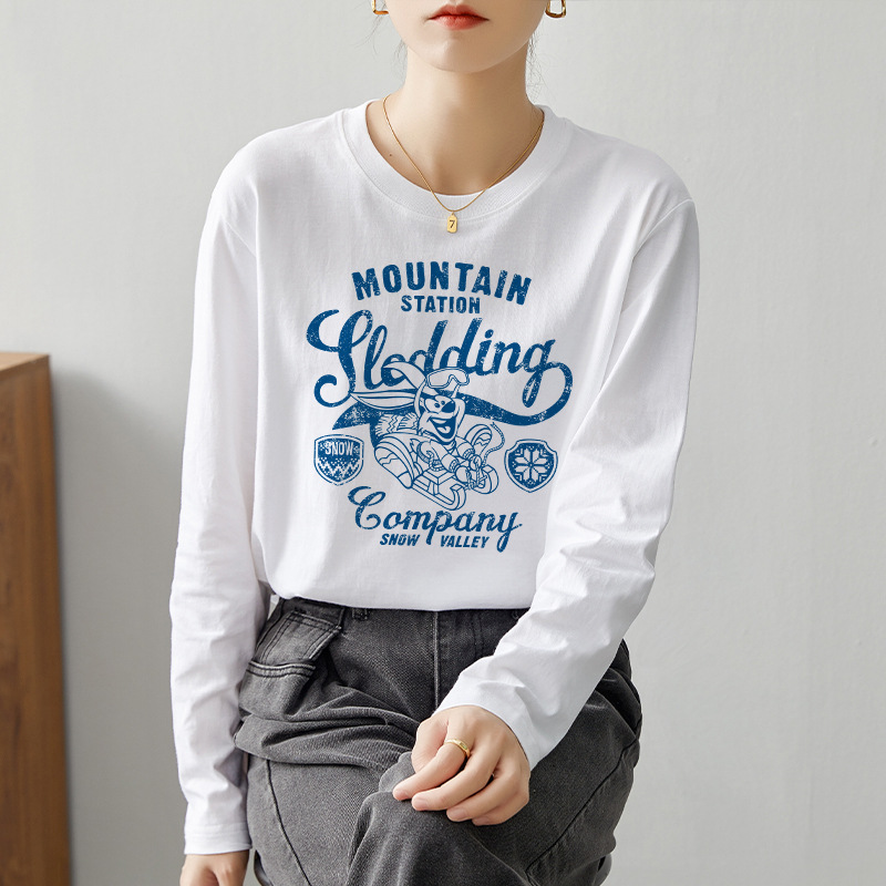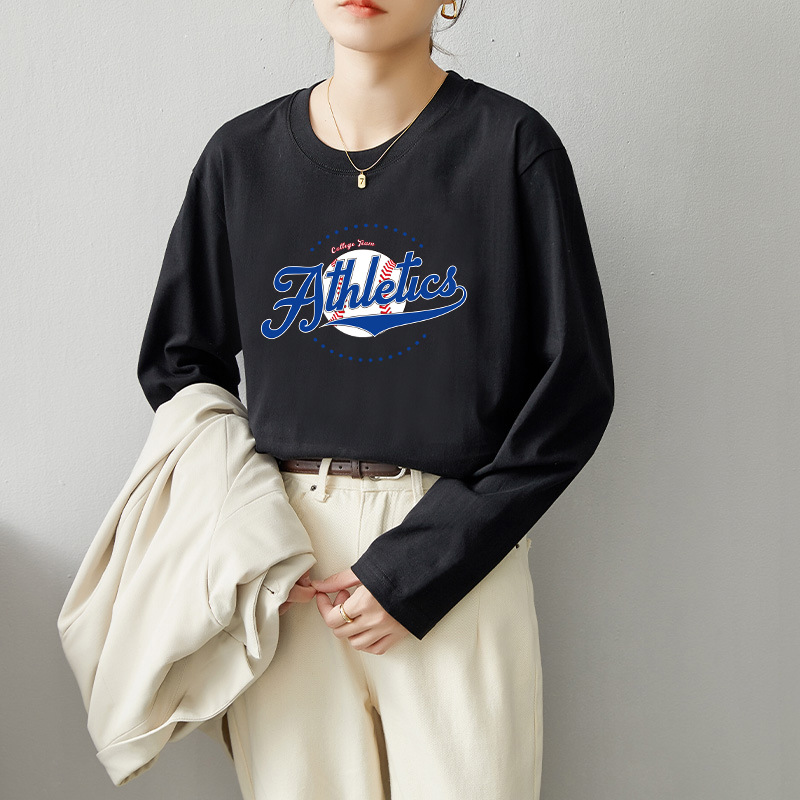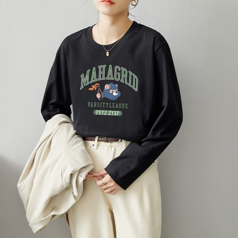 Главная страница > Женская футболка из чистого хлопка с длинным рукавом, осень 2024, свободного кроя, универсальная, с принтом, базовая футболка, топ, оптом, модный стиль