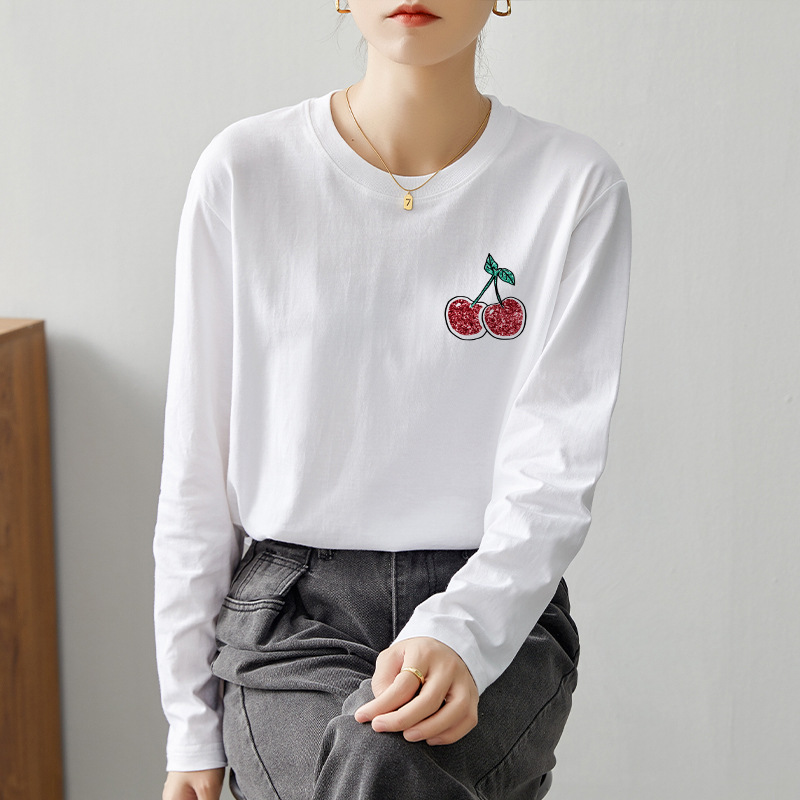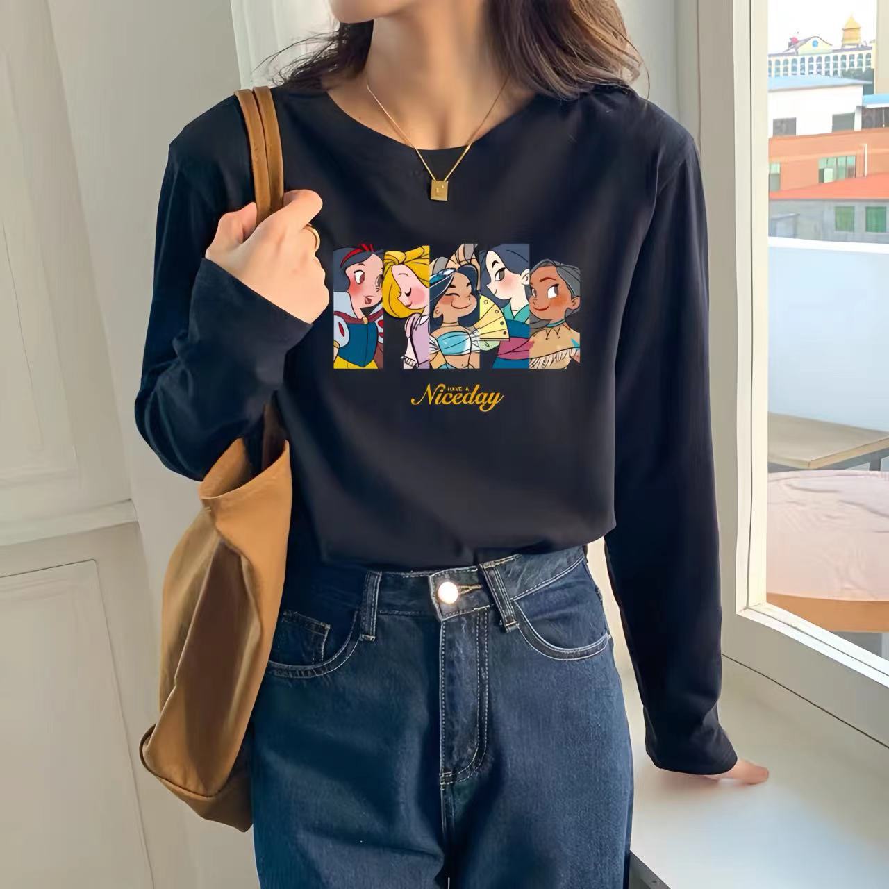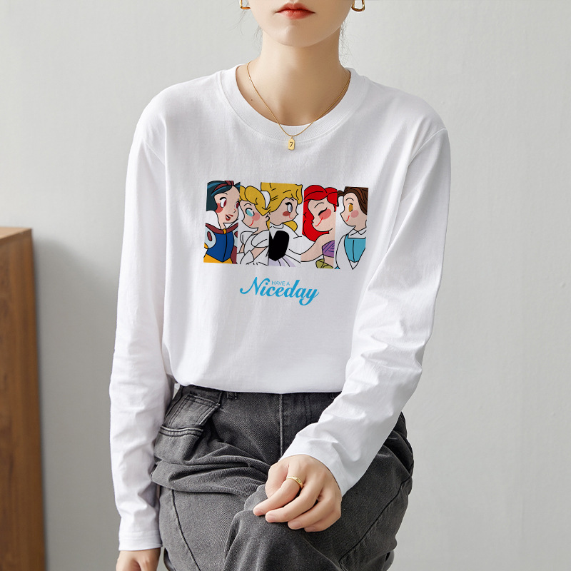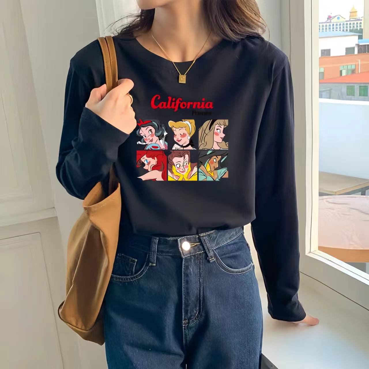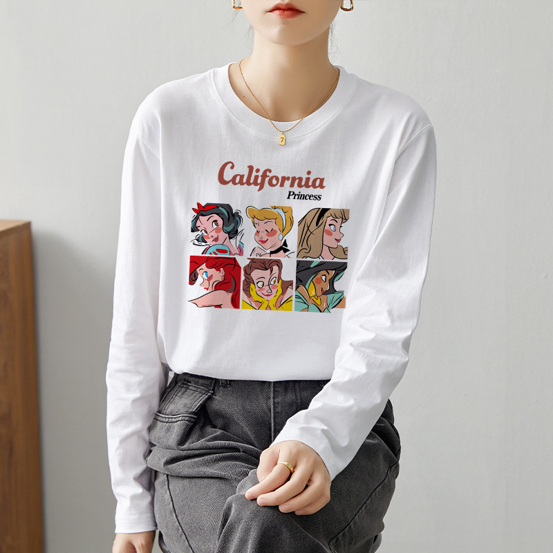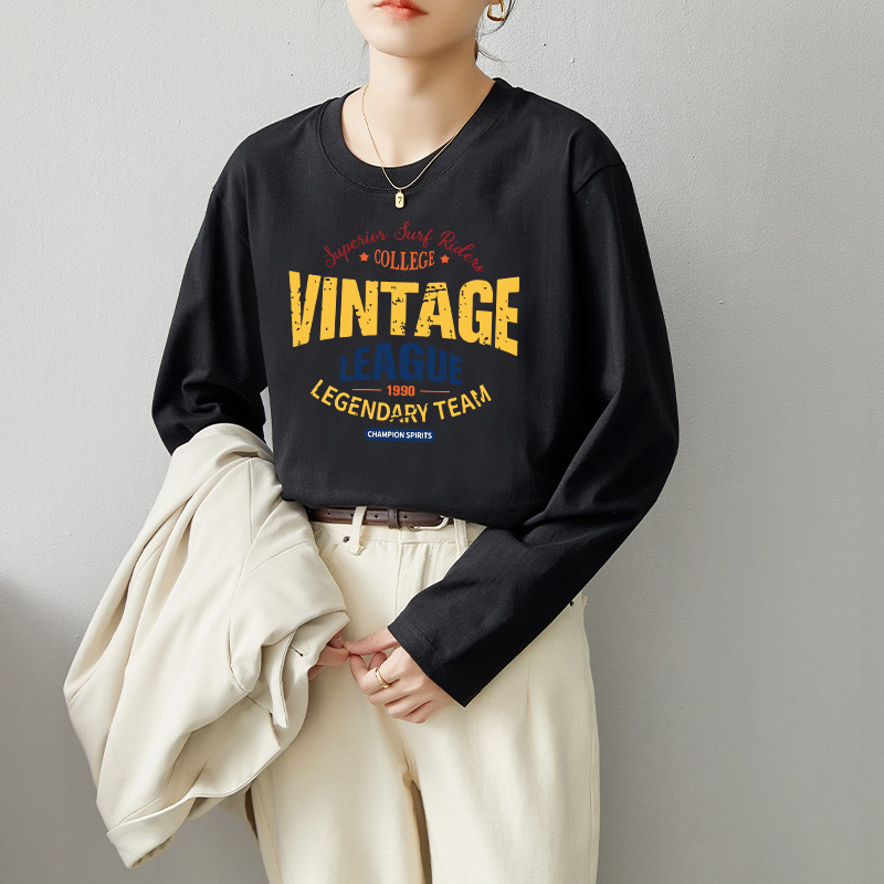 Главная страница > Женская футболка из чистого хлопка с длинным рукавом, осень 2024, свободного кроя, универсальная, с принтом, базовая футболка, топ, оптом, модный стиль