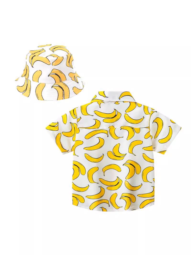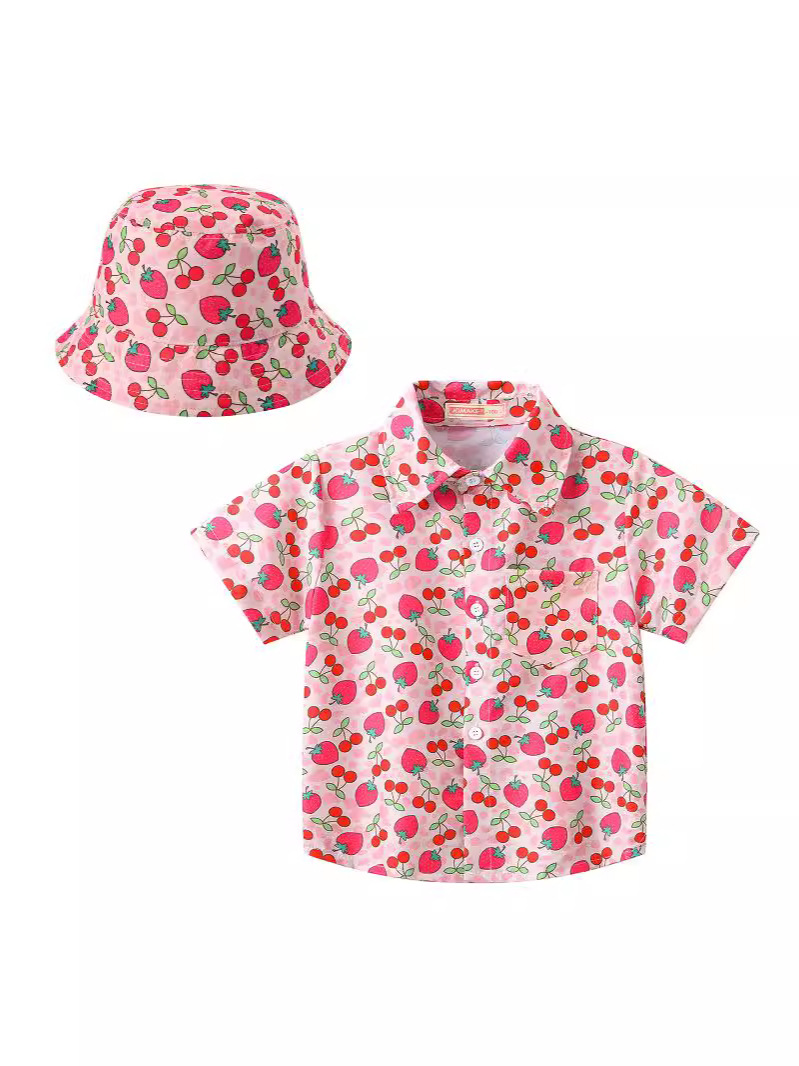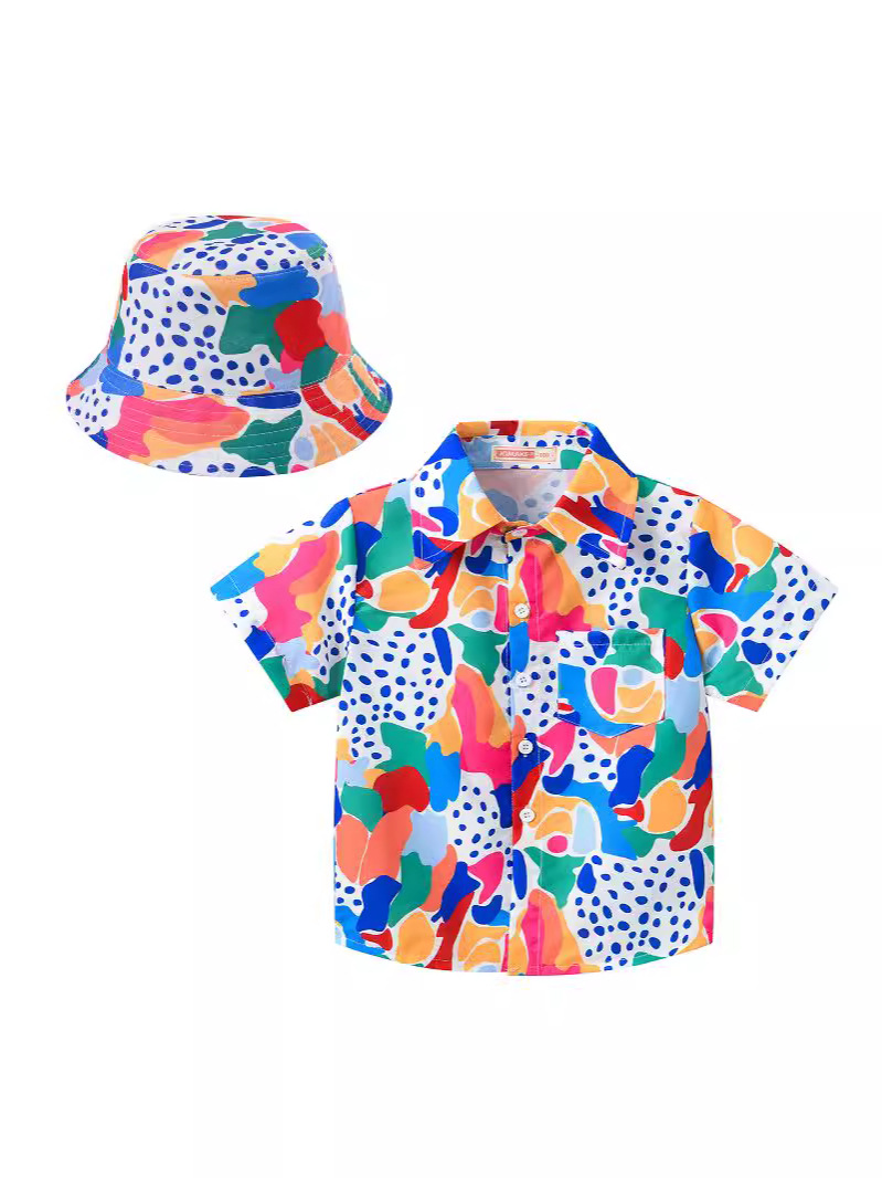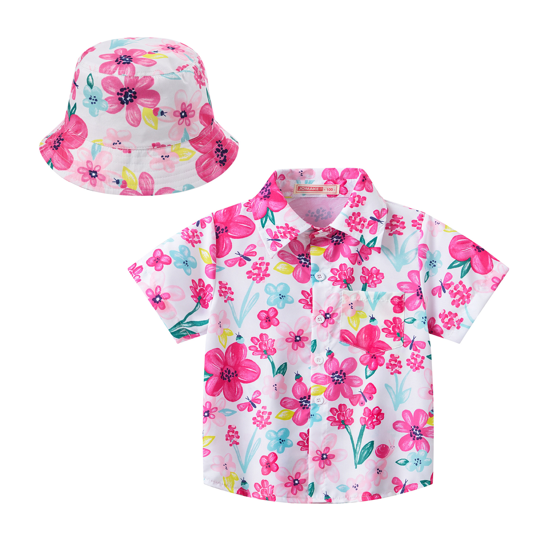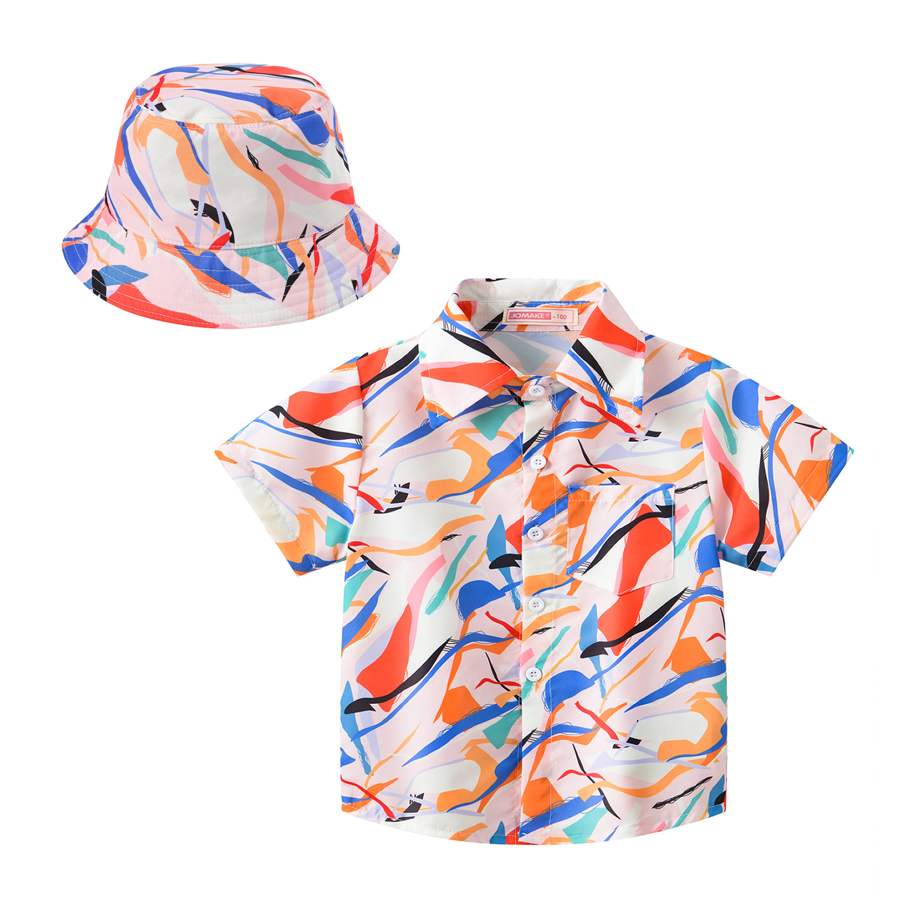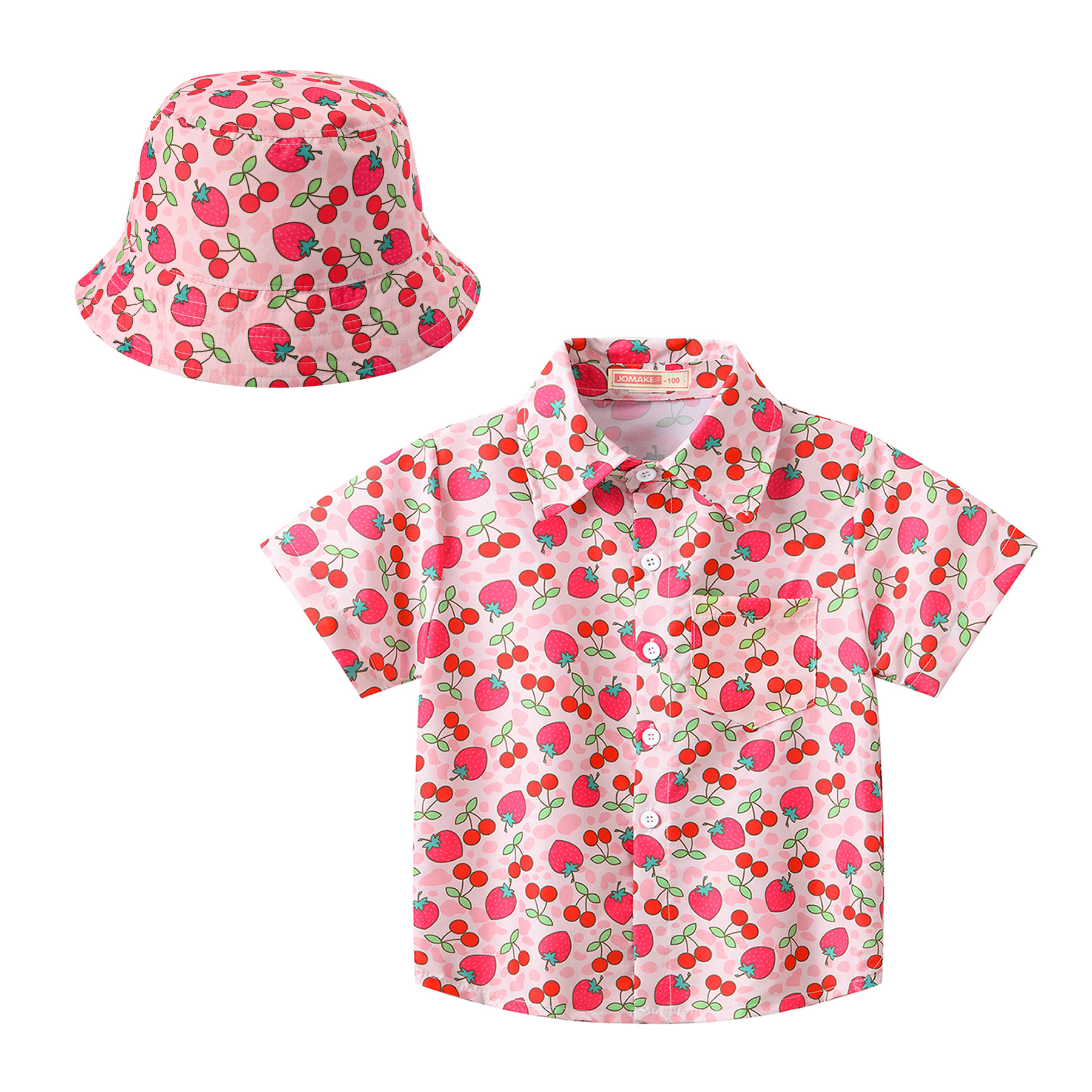 Летняя новая девушка среднего возраста корейская версия с диким принтом повседневная рубашка с короткими рукавами того же цвета шляпа детская одежда оптом