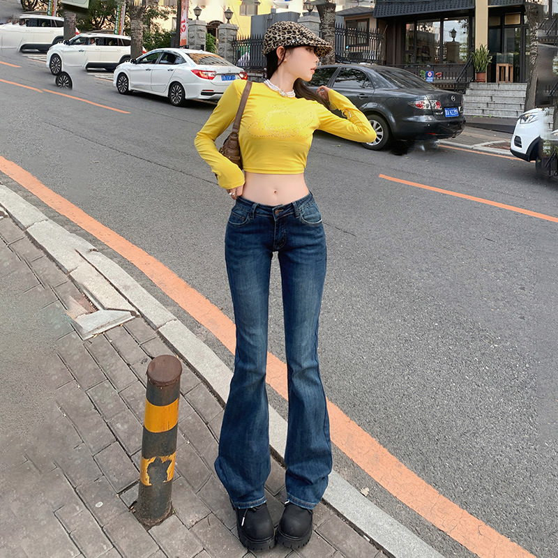 YC & американский ретро с низкой талией горячие девушки расклешенные брюки тонкие тонкие эластичные джинсы женские осень-зима & длинные брюки