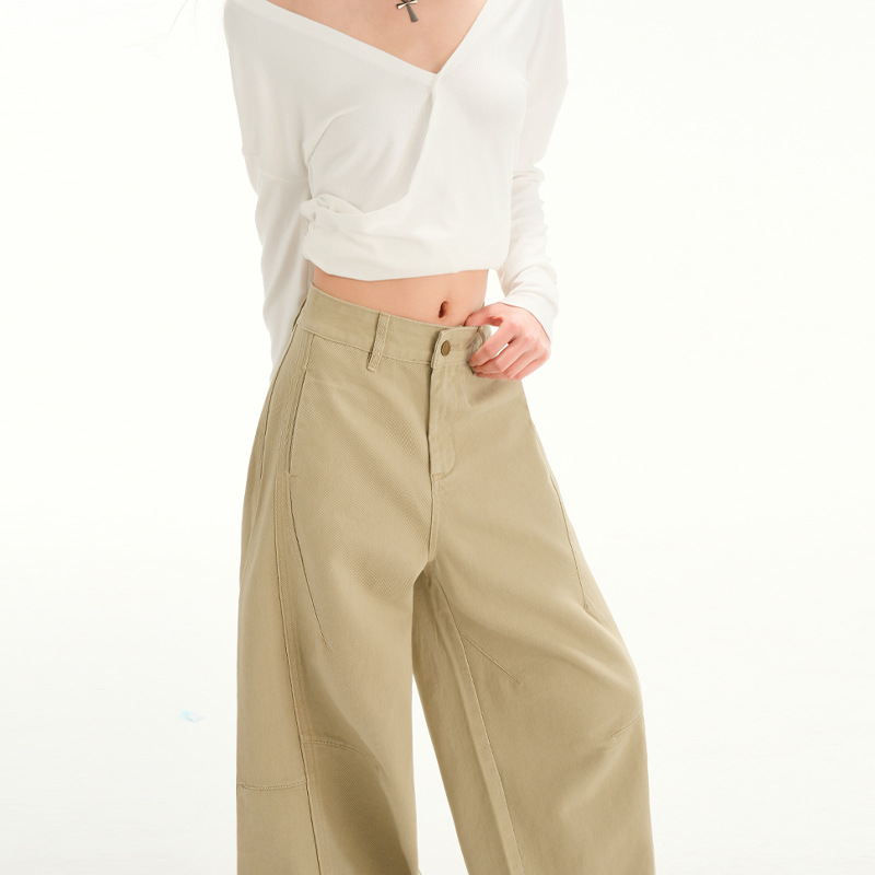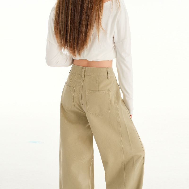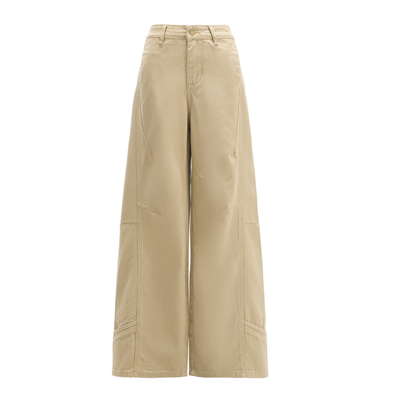 Главная страница > SY7609 новый американский ретро джинсы женский дизайн чувство сшивания цвета хаки свободные широкие ноги прямые брюки