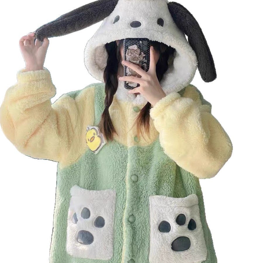 Главная страница > Специальная цена!! Симпатичная собака пача коралловый бархатный пижама женская осень-зима новая толстая домашняя одежда ночной одежды можно носить на улице