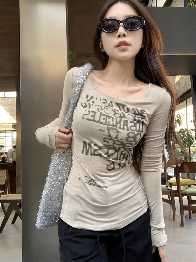 Главная страница > [260 г человеческий хлопок модал] американский ретро сладкая горячая девушка с длинными рукавами тонкая футболка женская нижняя рубашка